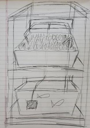 This project was a first attempt at designing a paludarium (a vivarium that includes both aquatic and terrestrial elements) and an opportunity to further experiment with bio-filtration. A 3-gallon tank and hardy fish species was used for this pilot scale system, from which lessons could be learned and later applied to a more complex, full-scale system. Unfortunately, within 48 hours of being introduced to the system, the fish managed to knife his way through a small gap in the rockscape and into the filter housing. Worse, because of a critical design oversight, the filter housing could not be accessed quickly and easily enough, and the fish perished. The system then had to be reconstructed.