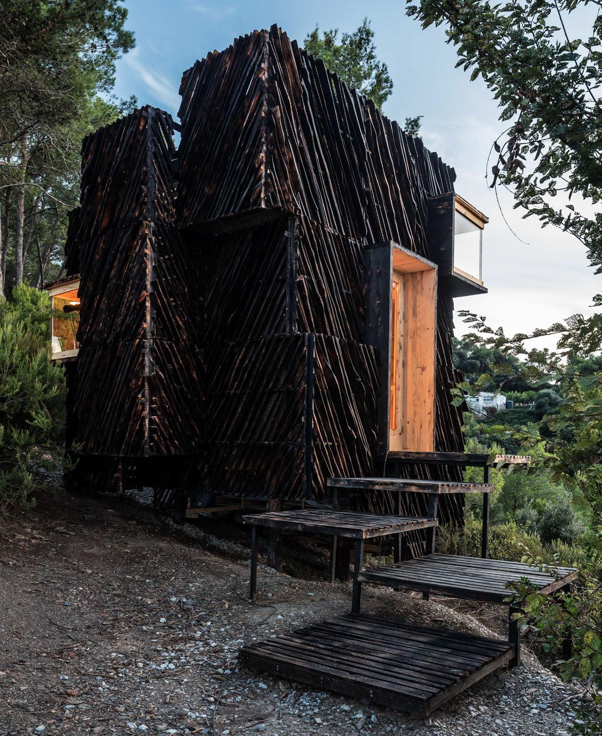 4 - Rain screen (charred o cuts from CLT production) - local pine wood