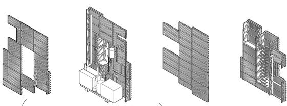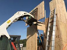 All CLT panels are pre-fabricated and rapidly assembled in a secure staging area before the entire structure is lifted into position on site by a crane