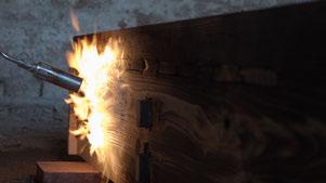 5 - Entry stair platforms (charred o cuts from CLT production) - local pine wood