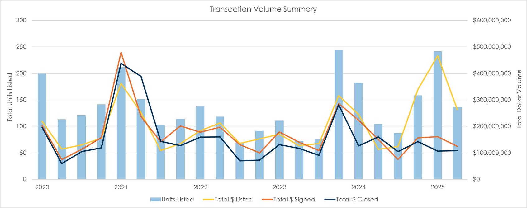 Q2 2025 marked a notable shift in both market performance and overall sentiment following a lackluster Q1 that fell short of seller and broker expectations. Much of the second quarter was weighed down by global tariffs and the ongoing restructuring of international trade, contributing to widespread uncertainty across the financial markets during what is traditionally the most active time of the year in the local marketplace.