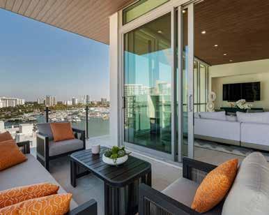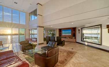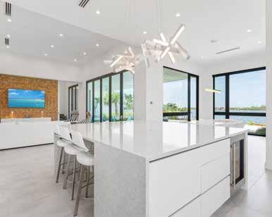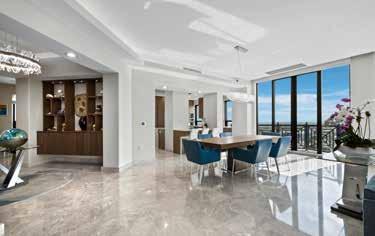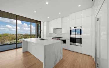 island imported from Brazil, with Wolf, Miele, and Sub-Zero appliances throughout. The spainspired primary suite includes a waterfall feature wall, dual curbless shower, lighted soaking tub, and Toto smart toilets. A private elevator and full smart-home system ensure ease and efficiency.