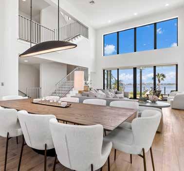 Tucked behind the gates of Anchorage Place in The Lake Club, this recently built Stock Custom Home is a true architectural masterpiece. Surrounded by lush natural scenery on 0.67 acres, the 5,997-SF estate offers a tranquil backdrop that pairs beautifully with its contemporary flair and relaxed Florida resort-style ambiance. Professionally decorated and fully furnished, it captures the spirit of “organic modern” design through earthy tones, layered textures, and refined finishes.
