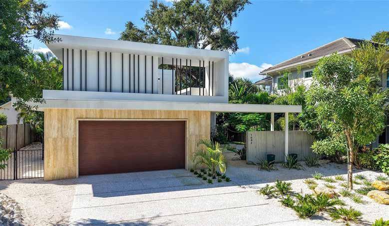 A stunning new West of Trail residence by award-winning architect Dan Lear, this meticulously crafted home blends modern elegance with timeless sophistication. Spanning over 3,800 SF, it offers four bedrooms, five baths, an expansive great room with corner pocketing glass doors, and seamless indoor-outdoor living. Vein-cut travertine, lush landscaping, and private guest terraces create a refined retreat near Selby Gardens and Sarasota’s best amenities.