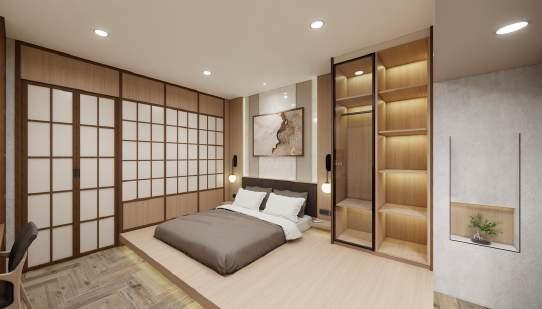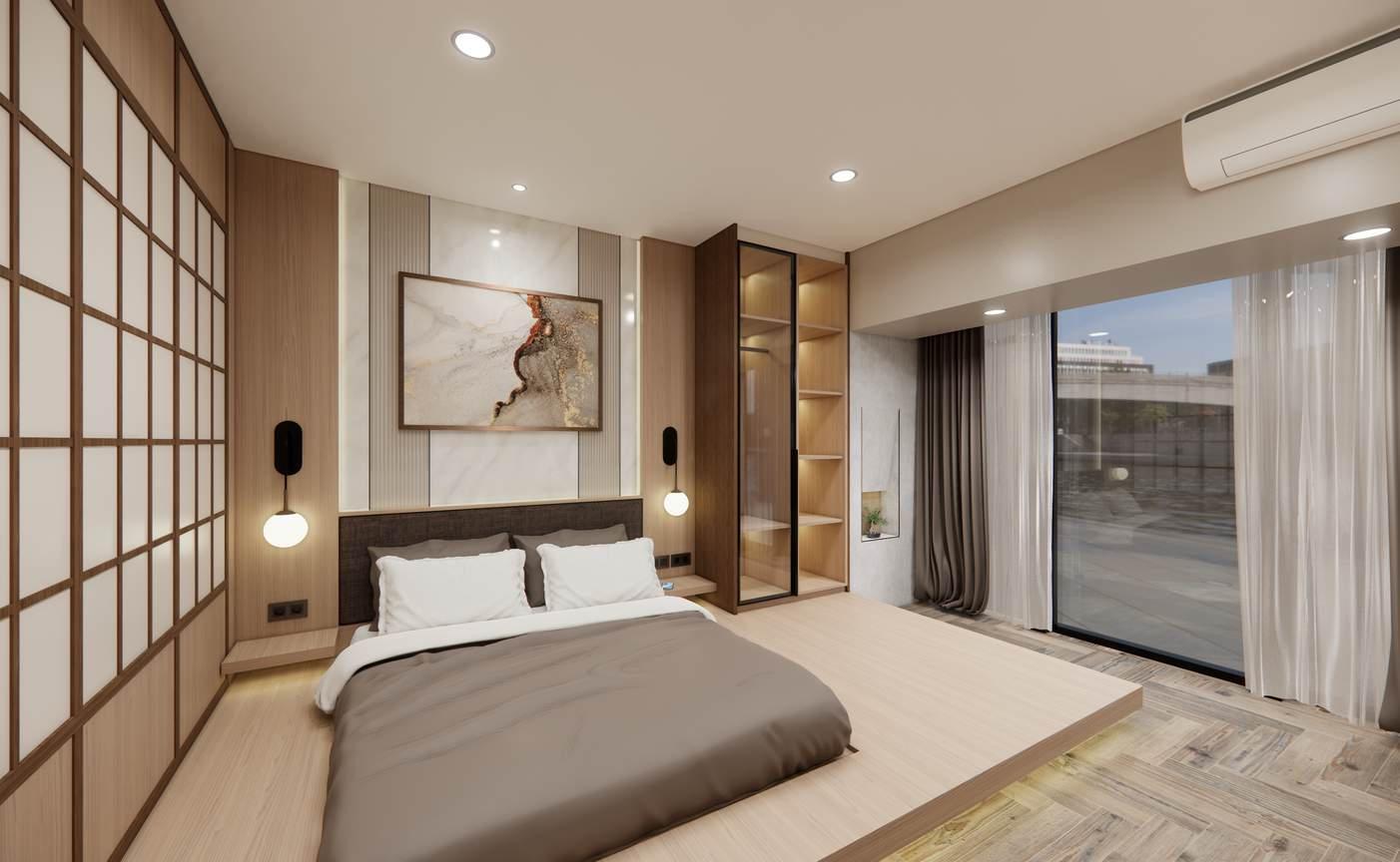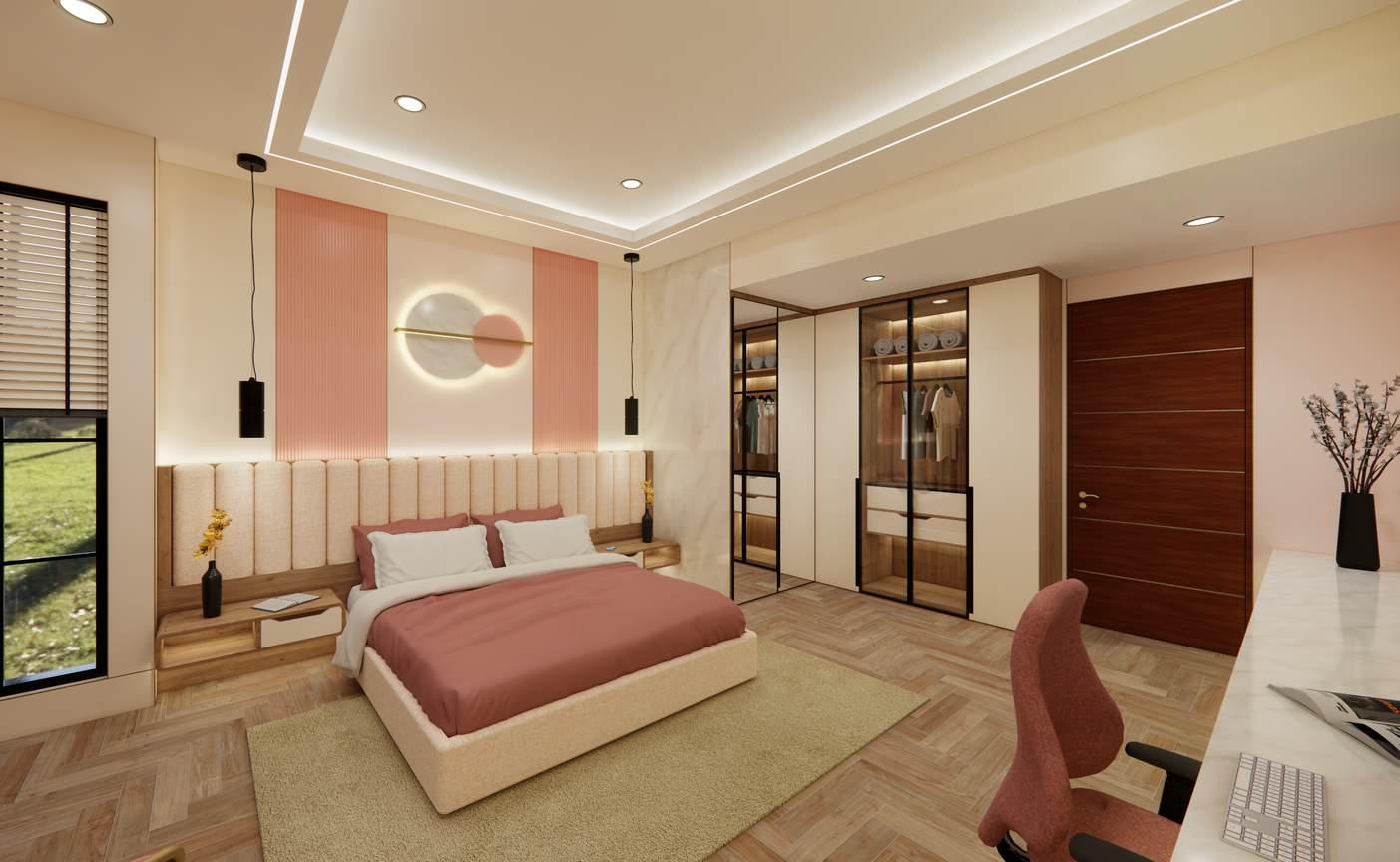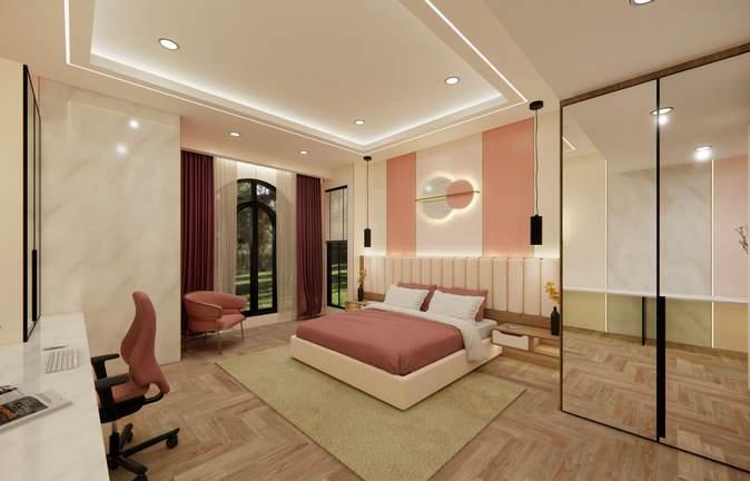Comfort is priority in residential designs. Made up with neutral colours and an accent, brings a perfect balance of aesthetics and comfort into one's bedroom. Simplicity is key to pleasing the eye.