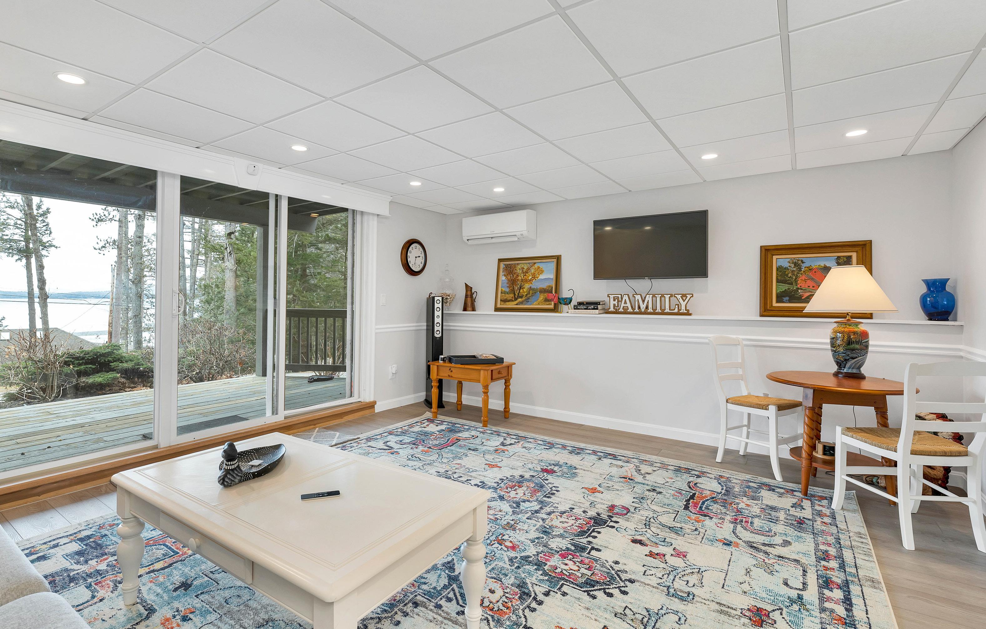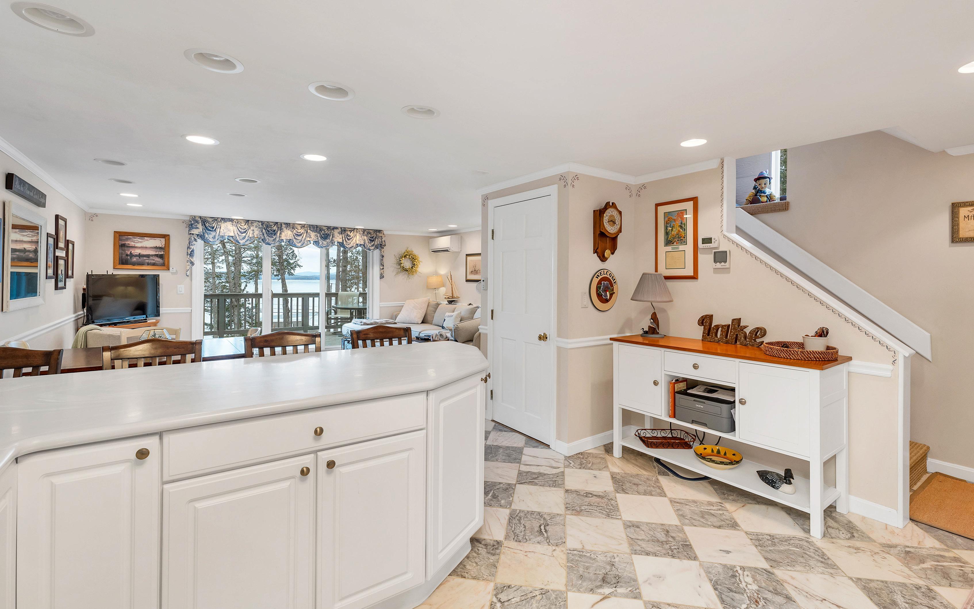 Main Floor | Open floorplan to living room leading to sliders to Lake Side Deck