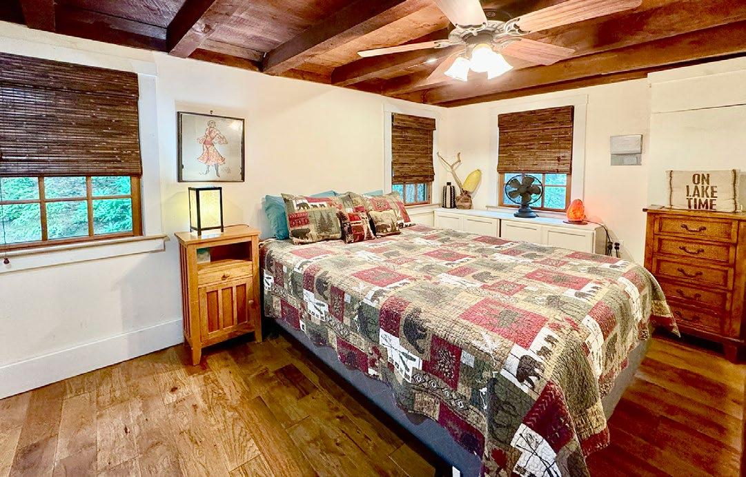 Whether you’re relaxing on the 16 x16-foot lakeside deck overlooking the beach and the views, enjoying the beach and fire pit, or taking in the panoramic views from the roof deck, this sanctuary promises peace, privacy, and a touch of rustic luxury.