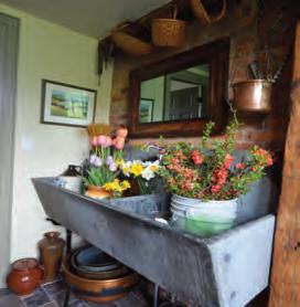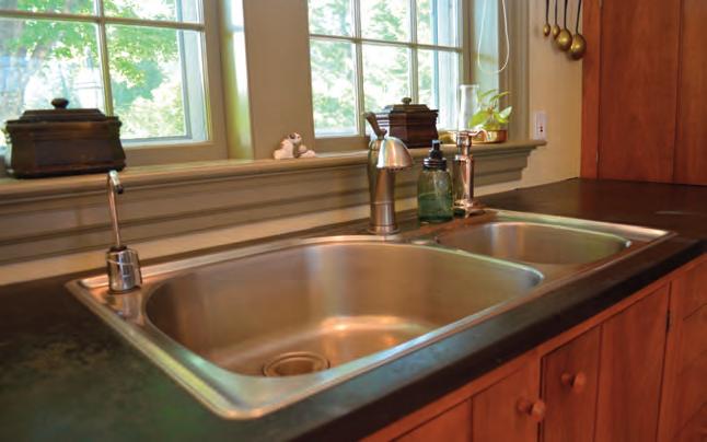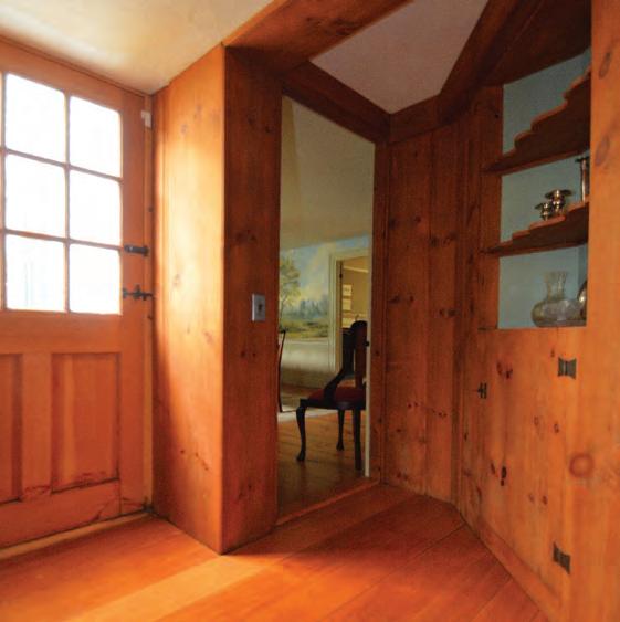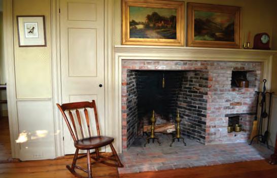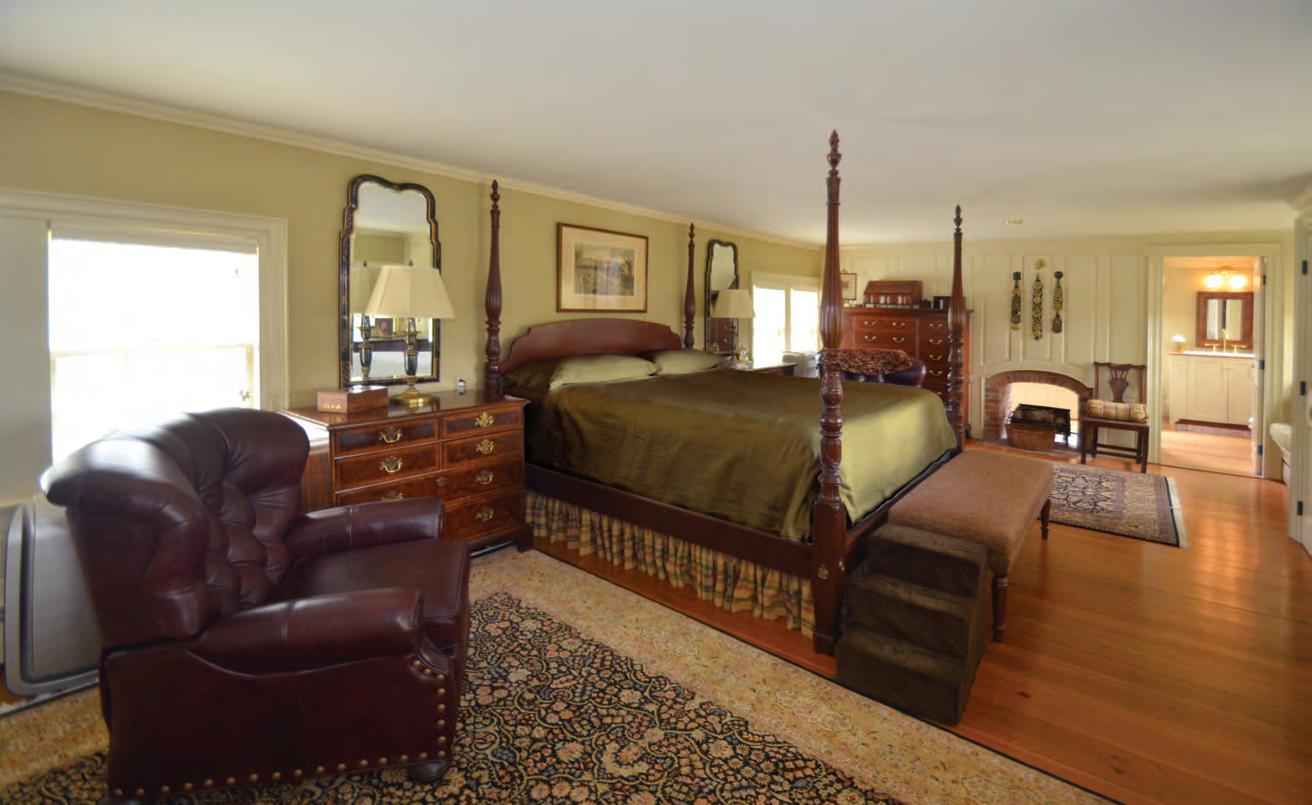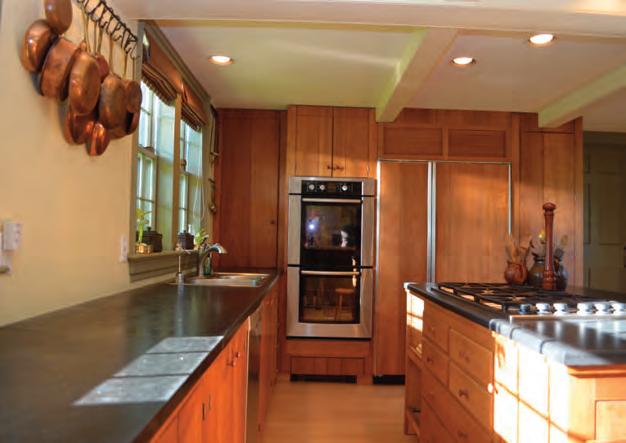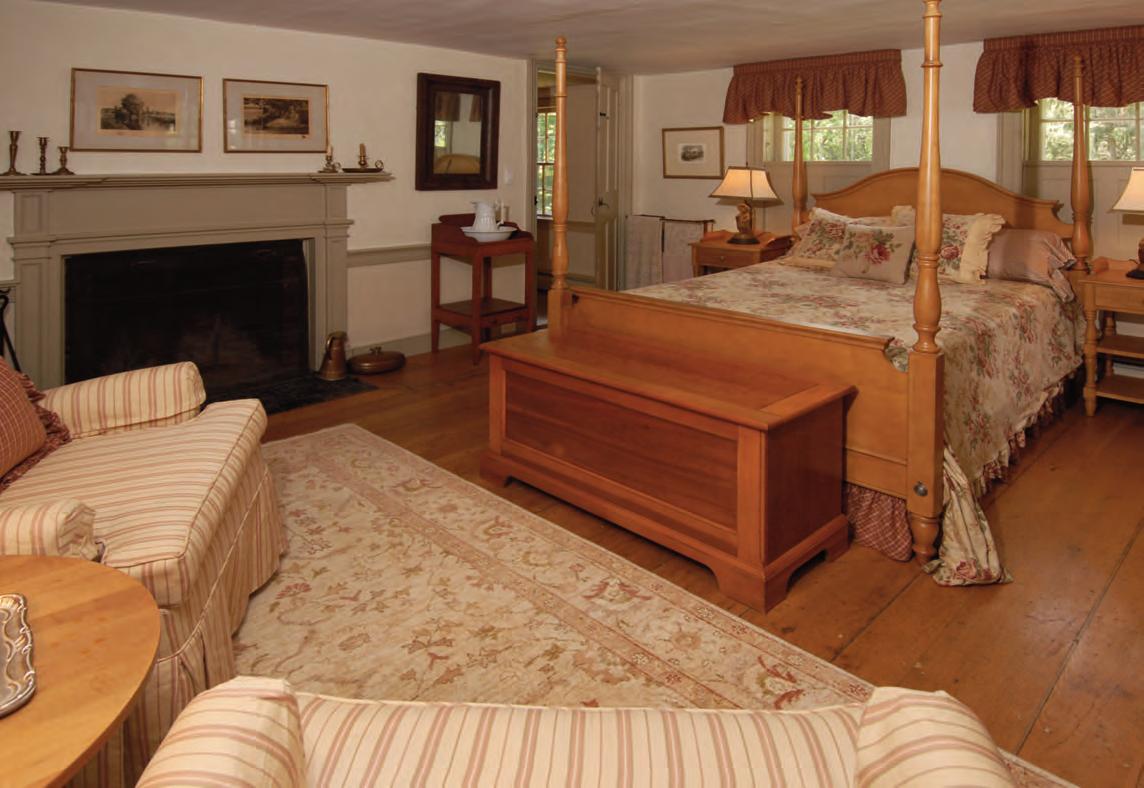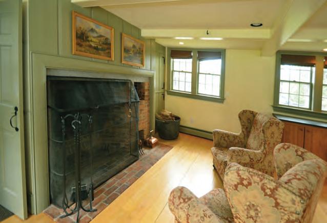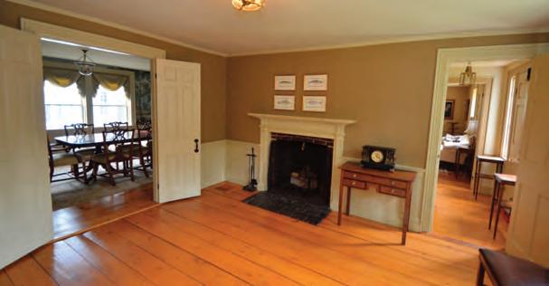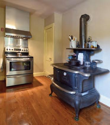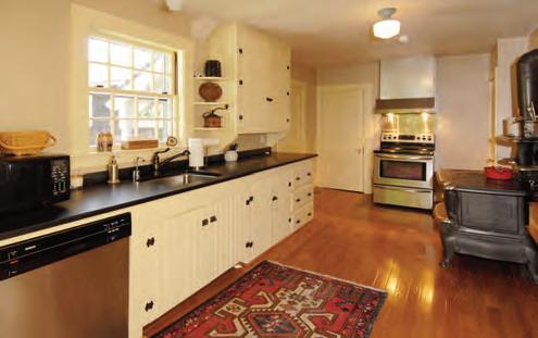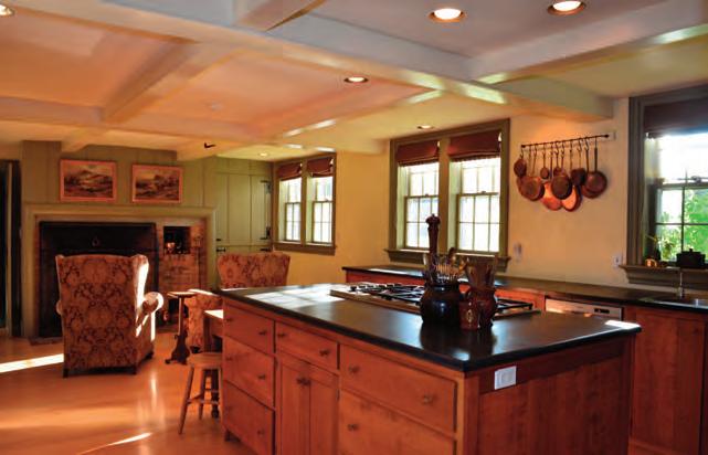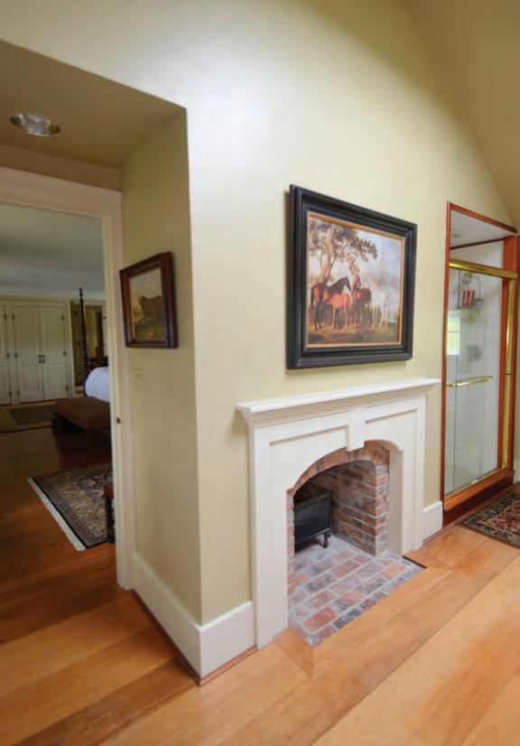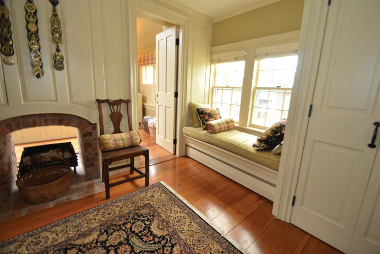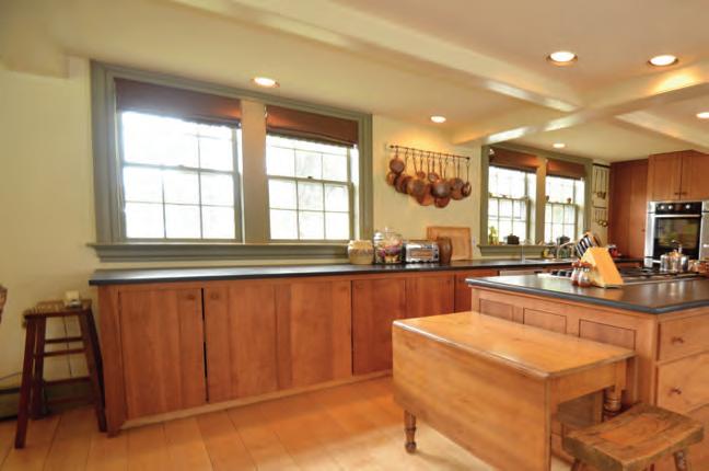 The chef’s kitchen is a perfect blend of period details and modern amenities including slate counters, paneled high end appliances and a cozy sitting area by the Rumford fireplace.