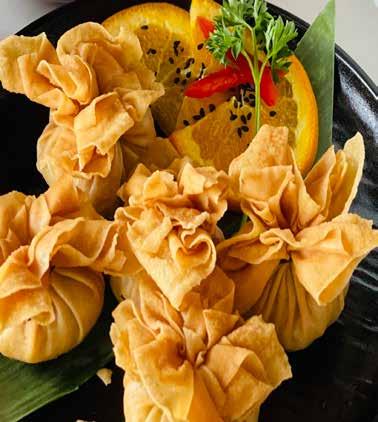 Sweet potatoes, onions mixed in curry powder wrap and deep fried crispy brown served with Chef’s Signature Sauce