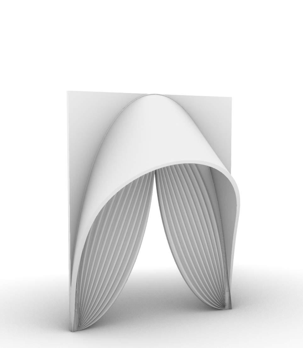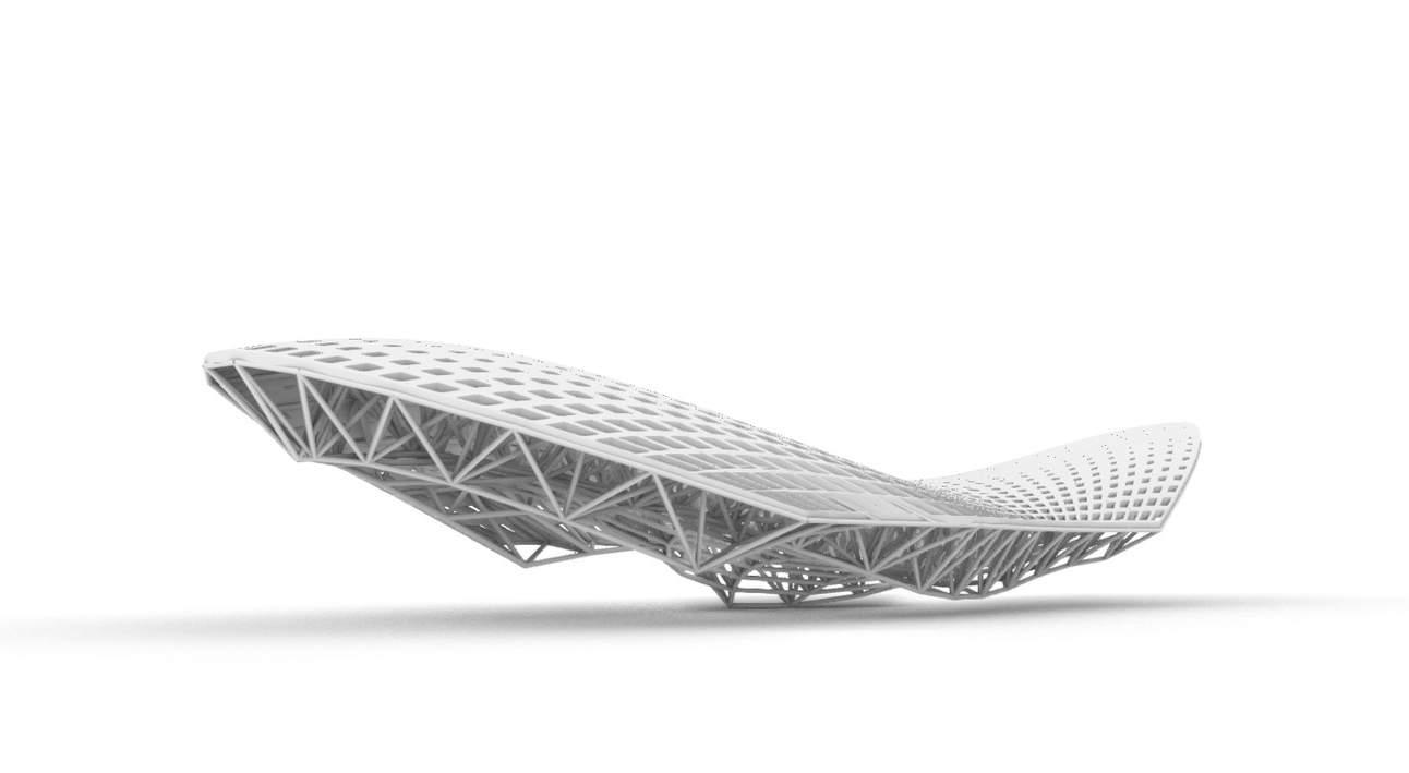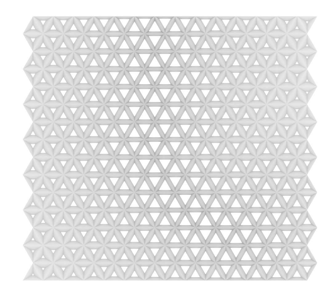 The model is reconstructed based on the principle of deconstructing mass into its simplest components: points, lines, arcs, and planes The first step involves placing the points in their appropriate locations before connecting them to form lines and arcs Then, the bounding curves are transformed into a plane to complete the mass. Once the basic form is achieved, a pattern is applied using a script that utilizes image patterns