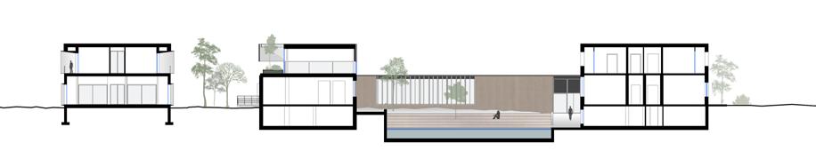 The enclosure makes a peaceful environment, while in the centre of the courtyard, a pond is added, relating to the river that runs parallel to the extension.