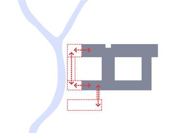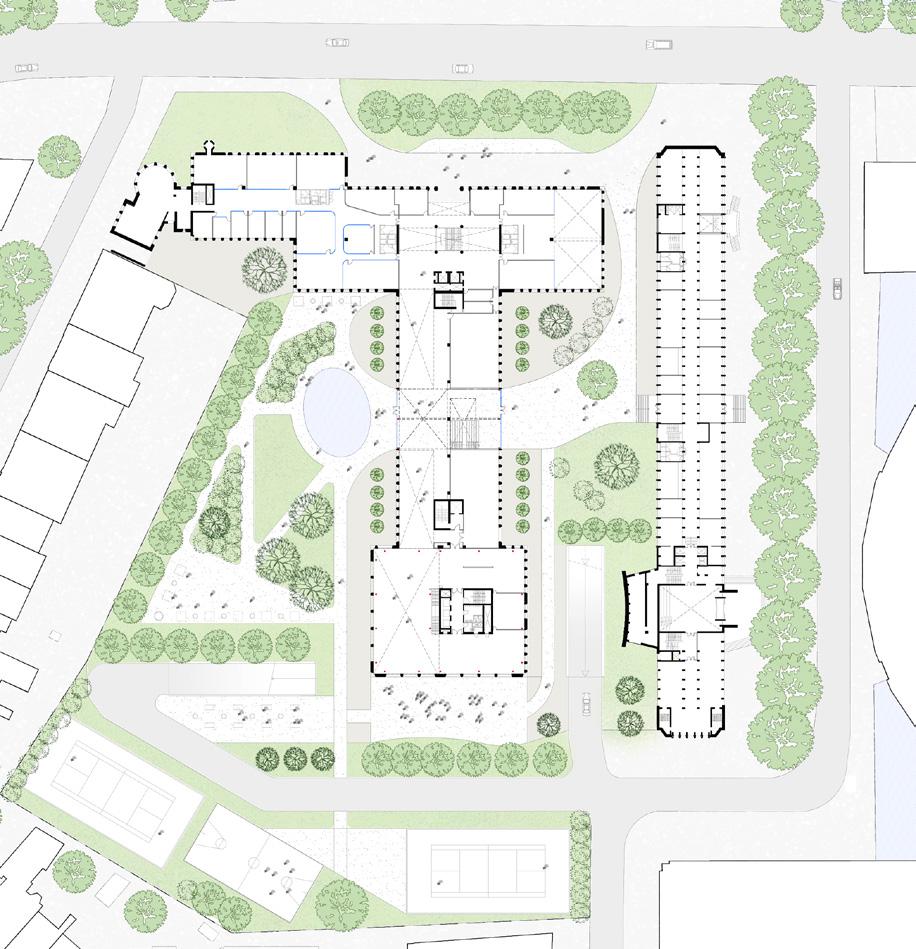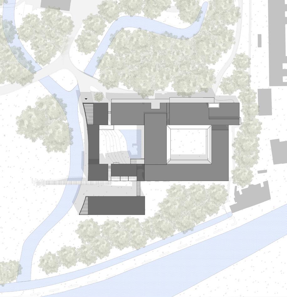 Also, by adjusting the geometry to the river, a strong connection with the site would be created. Furthermore, an additional informal connection with the surroundings is made, owing to the footbridges that crosses the river.