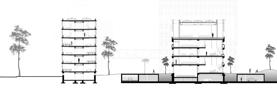 The conversion of the typical stacked section of the office building, with the introduction of voids, was a crucial design decision for the new purpose of the program.