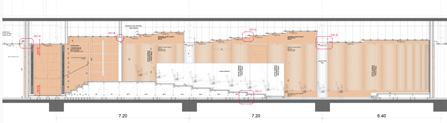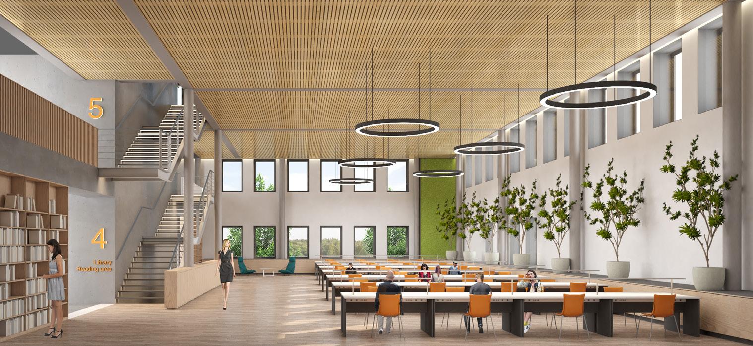 In the middle of the building, there is a new 12-meter hall, that acts as the new heart of the program, as it provides spatial connections among the levels that host education spaces.