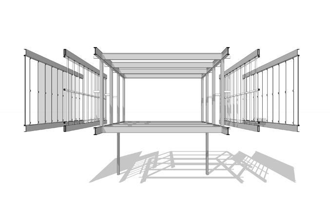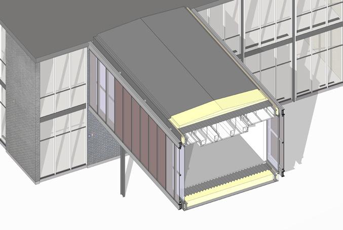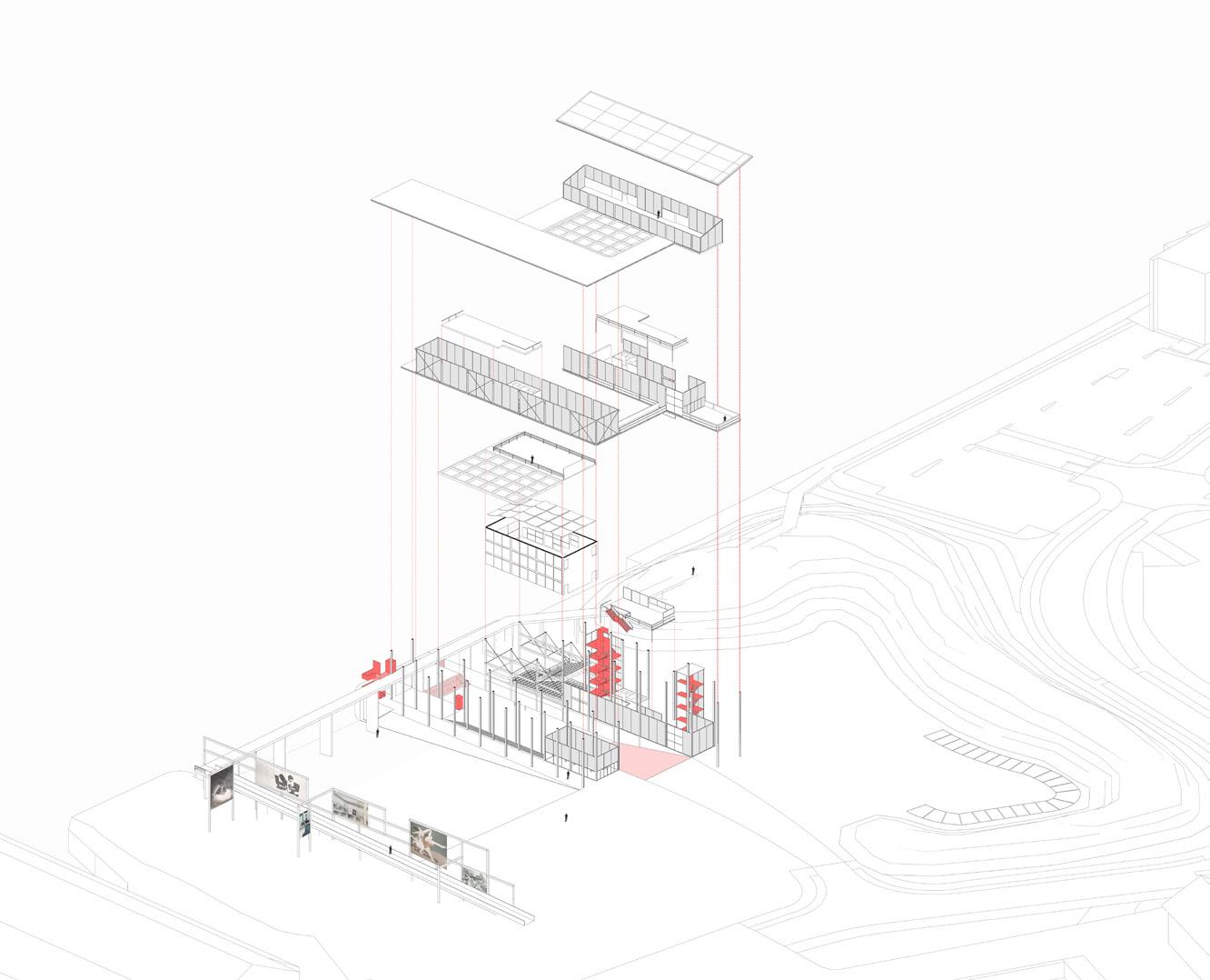 Exploded structural Axonometric - Using a lightweight steel construction for the transitional volume