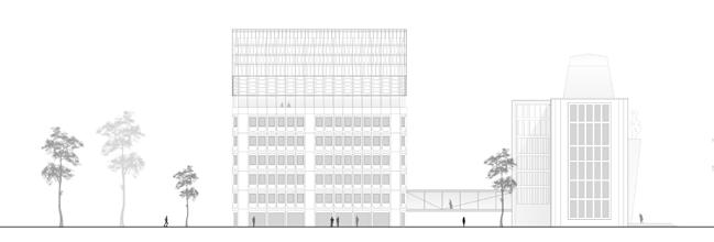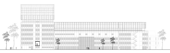 The cyber security university takes advantage of the architectural representation of the police and corporate identity, which is reflected on the building and a transparent layer is added on top of the existing, resembling the new public function of the former police station. Driven by the architectural potential of the existing structure, the new design aims to showcase an approach that improves the spatial qualities and the adaptability of the existing prefabricated concrete structure.