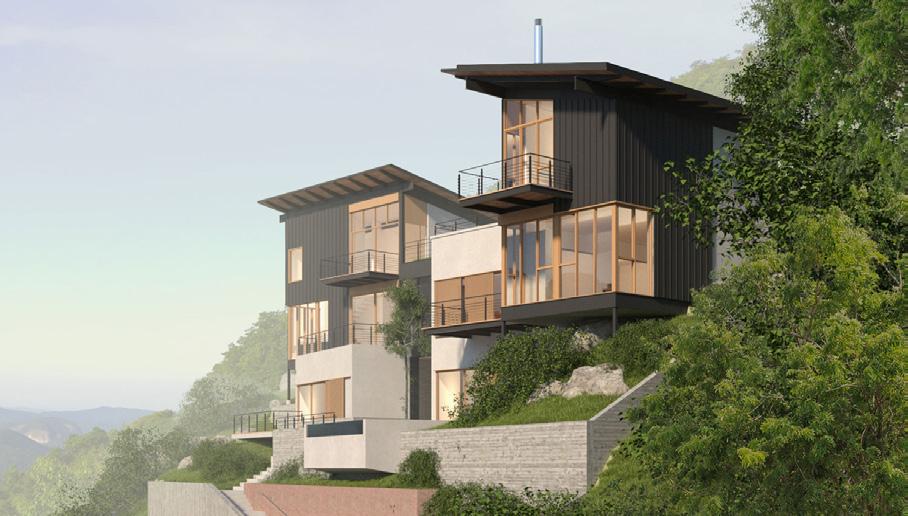 Located in a tree-covered area and a site featuring a slope of more than 60o , the housing complex is organized into two separate and autonomous houses, with shared spaces for leisure.