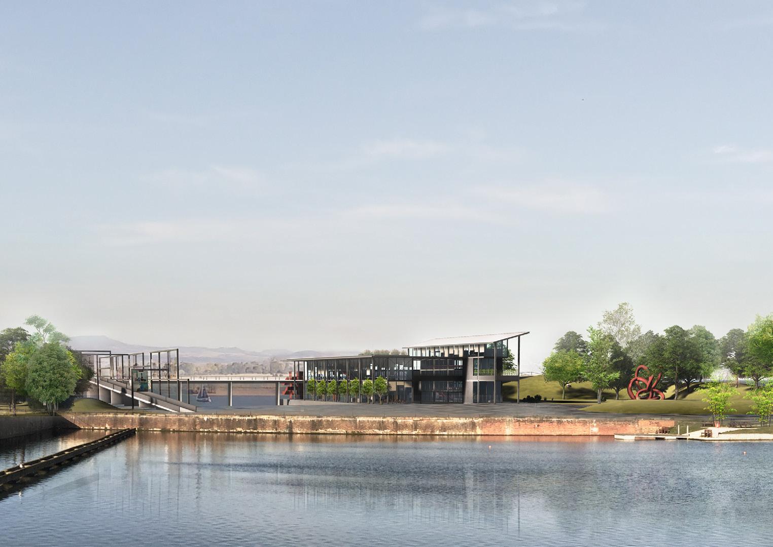 Physical characteristics of the site, such as the large flat plot and the element of water, were of high influence from the concept phase, and provided input regarding the positioning of the building and its height, so that it can be recognizable from a distance. Also, the large building is made out of lightweight materials, relating to the architecture of the existing building of the dockyard.