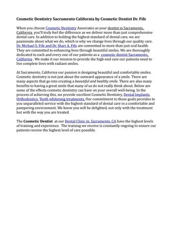 Our Sacramento dental office offers the latest in General Dentistry. Our friendly and competent staff is dedicated to patient comfort and quality care. We provide the best and latest in dental technology and treatment options. We provide gentle, family-oriented dental care to the adults and children of this community. We utilize the best equipment sterilization techniques available to dentists. In addition to general dentistry and cosmetic dentistry, we provide dental services like Periodontal Care, Dental Implants, Root canal treatments, Dentures, Teeth Whitening, Orthodontics as well as other treatments. Our team emphasizes comprehensive quality care and preventive dentistry. We look forward to welcoming you to our beautiful dental office in Sacramento California.