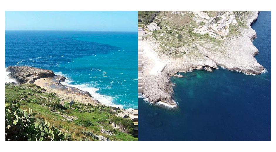In certain climatic conditions, it is possible to see off the Marina di Leuca a dividing line between the currents coming from the Gulf of Taranto and the Otranto Channel that actually divides the two seas. This is a unique and rare phenomenon caused by the different salinity of the waters that brings a difference in colour that is perceptible even to the naked eye, creating a spectacle of indescribable beauty.