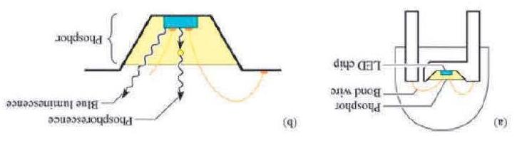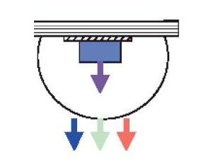 2. Usar un material fosforescente para convertir la luz monocromática de un LED azul o UV en una luz blanca de espectro más amplio (prácticamente el mismo principio de la fluorescencia).