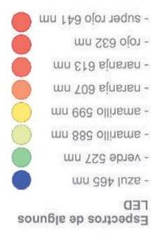 El color del LED depende del material del semiconductor. La luz emitida contiene solo una parte del espectro de luz, unas longitudes de ondas muy concretas.