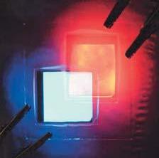 LEDs en un substrato de plástico semi transparente cuando están apagados (70 –85%). Emisión de luz bidireccional Aplicaciones: Ventanas iluminadas, entretenimiento, displays, señalización.