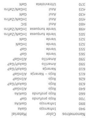 El color de la luz depende del material semiconductor empleado en la construcción del diodo, pudiendo variar desde el ultravioleta (UV LED UltraViolet Light-Emitting Diode ), pasando por el espectro de luz visible, hasta el infrarrojo (IRED, Infra-Red Emitting Diode). P (ánodo) N (cátodo)