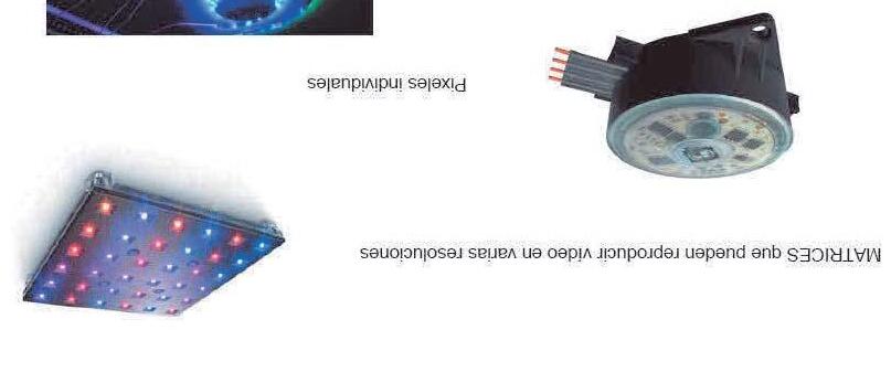 Los LED son disponibles en blanco, azul y verde, para el tipo emisor por ambas caras, y en color amarillo y rojo para el tipo emisor por una cara, se pueden controlar individualmente.
