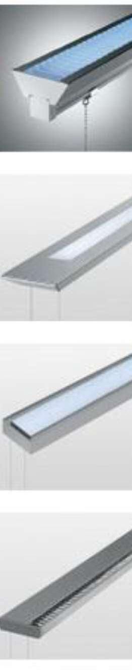Lasestructurasluminosasusanprincipalmenteelementoscon luminariasintegradasyunaóptica,ysepuedenempleartanto paralailuminacióngeneraldirectacomoparalailuminación indirectamedianteluzreflejadaporeltecho.
