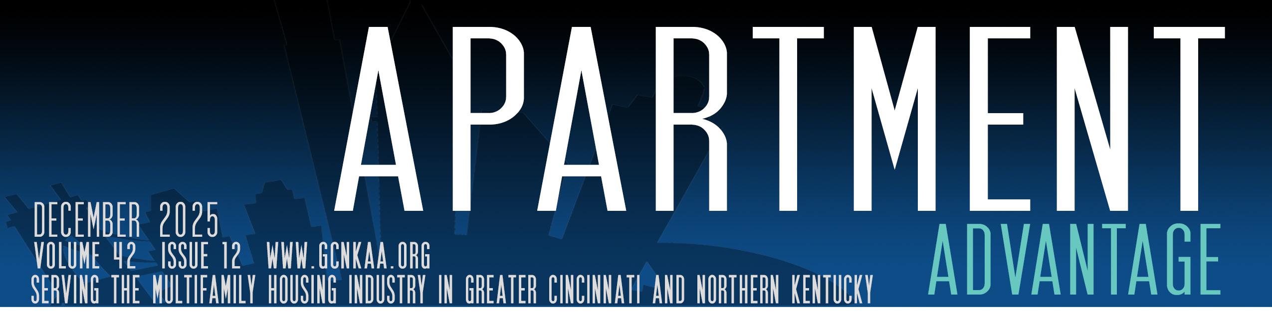 Apartment Advantage is a monthly publication of the Greater Cincinnati Northern Kentucky Apartment Association, Kenwood Executive Center, 7265 Kenwood Rd, Ste. 100, Cincinnati, OH 45236; phone (513) 407-8612; fax (513) 407-7868. For up-to-date information check out our website: www.gcnkaa.org.
