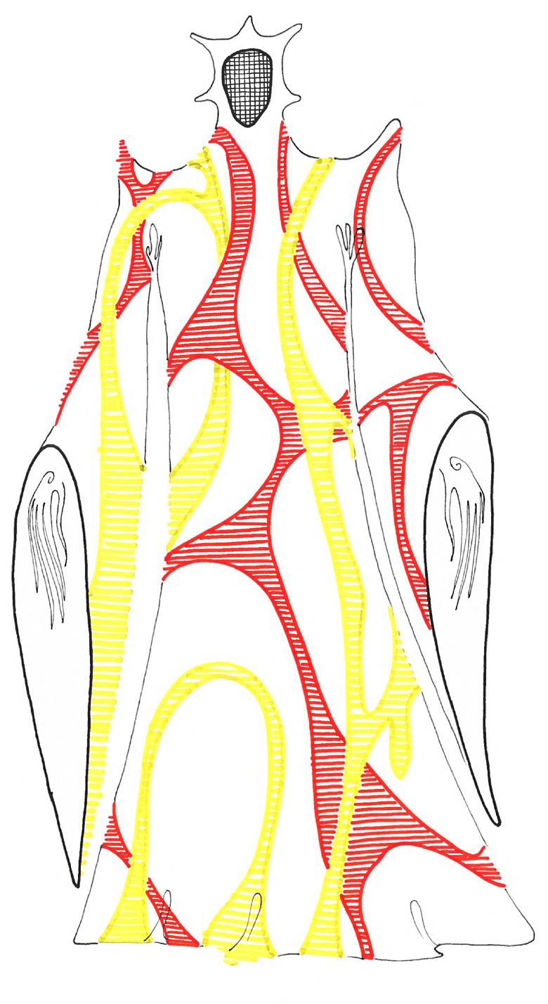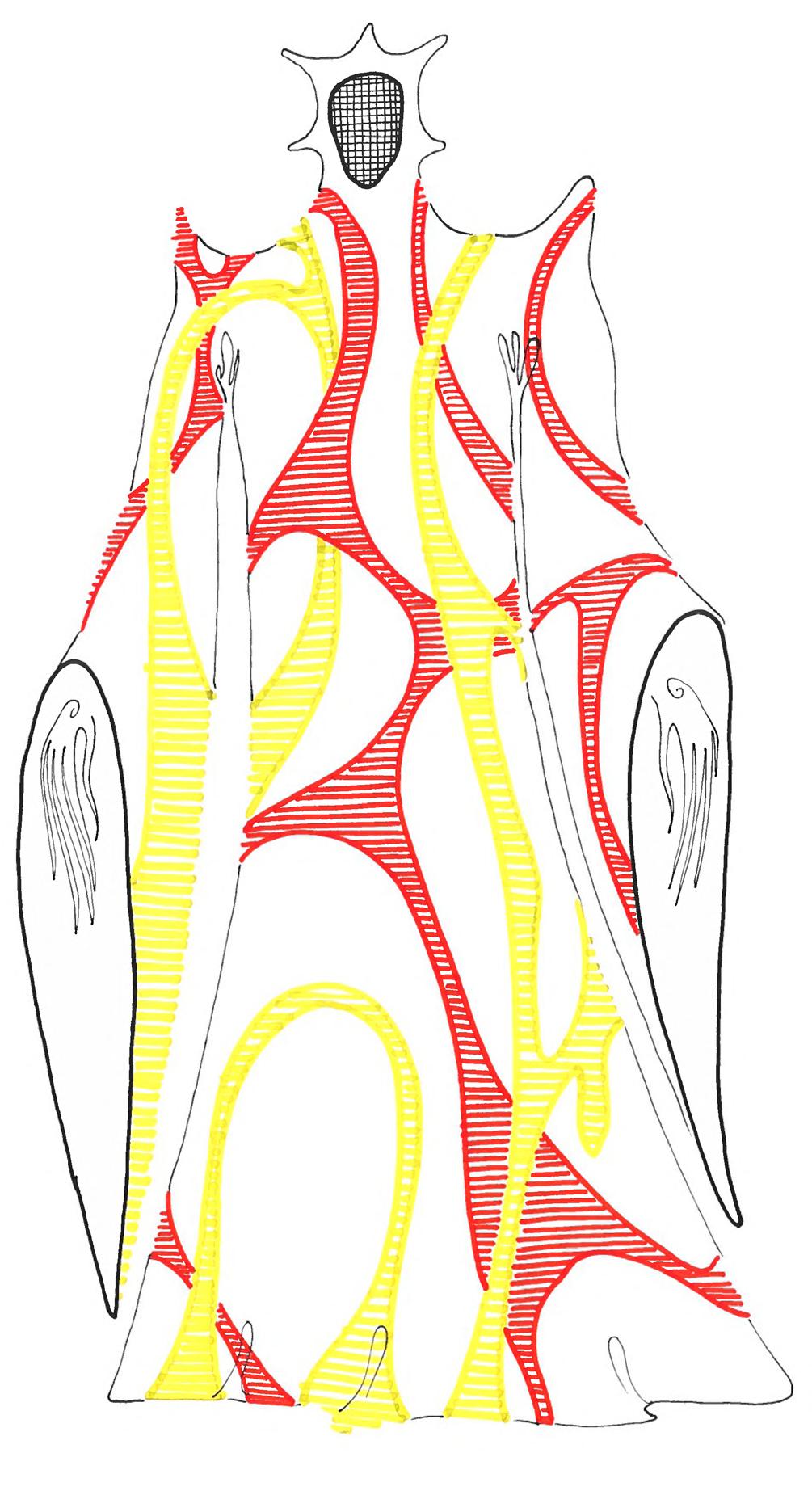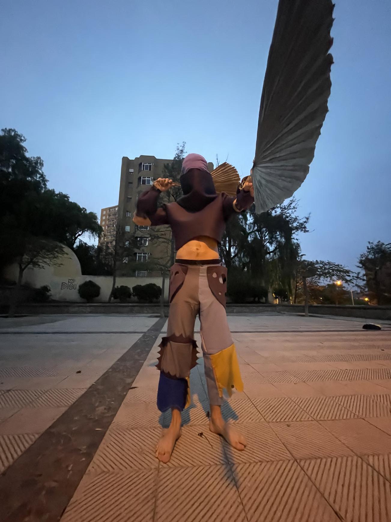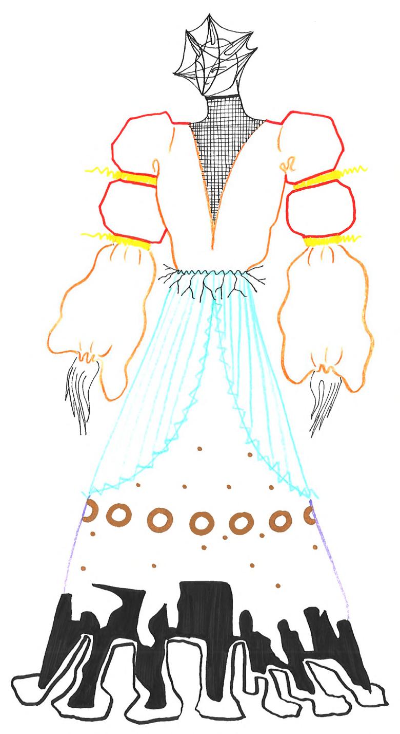 Esta idea nace básicamente de una visión personal, en la cuales se piensa a la movilidad o gestualidad de la persona en base a su atuendo (como un corsé que impide agacharse), se piensa también a aquel complemento para el cuerpo que permita la expresividad (como un abanico para una geisha) y llevar esta idea a una condición imprescindible, en el caso de esta obra se justifica como una necesidad biológica en los personajes. De este modo, inspirarse gráficamente y estilizadamente en la naturaleza o en un atuendo con semejanzas en algún elemento de la naturaleza.