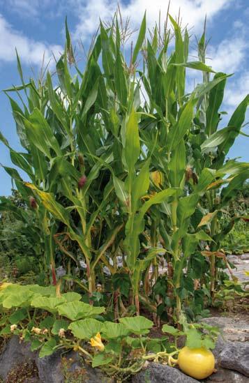A three sisters garden basically uses three layers to fill the space. The upright element is traditionally sweetcorn, but sunflowers can make an interesting alternative. It’s important to get your timing right with the sowing of your seeds though. The upright crop will need a two to three-week head start if it is to serve as a good strong support for vigorous beans.