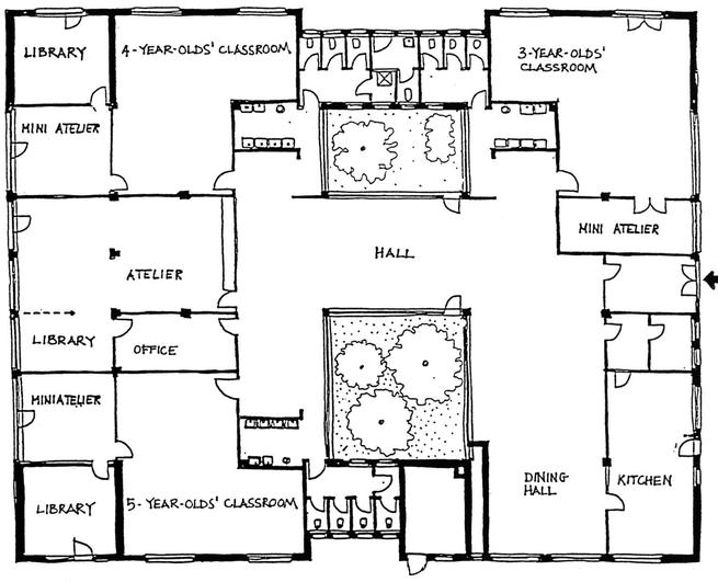 Fig 2.7 • “Plan of Scuola Diana”. https://www.researchgate.net/publication/261982212_ Amiable_Space_in_the_Schools_of_Reggio_Emilia_An_Interview_with_Lella_Gandini/ figures?lo=1&utm_source=google&utm_medium=organic