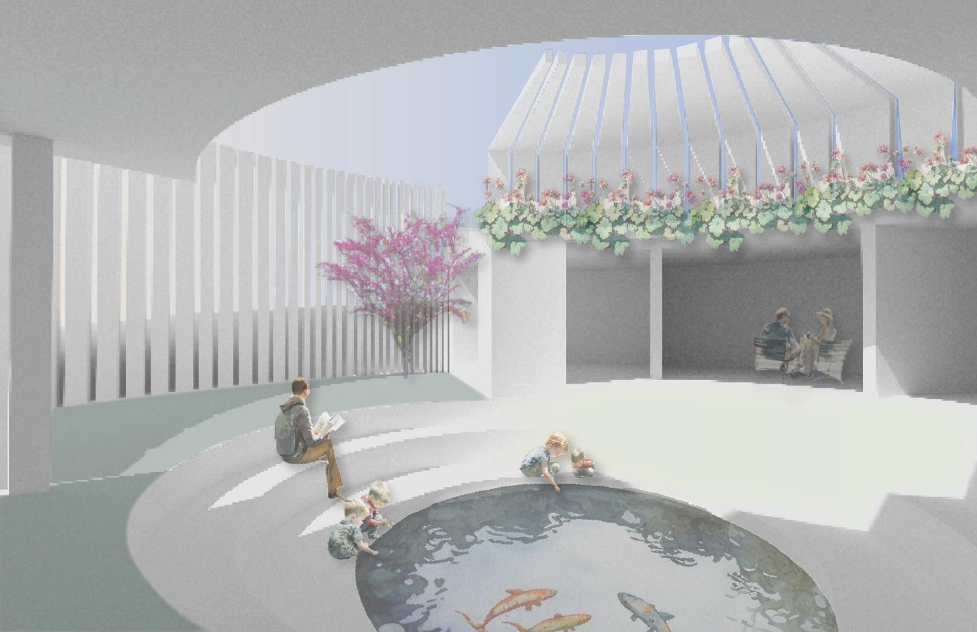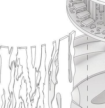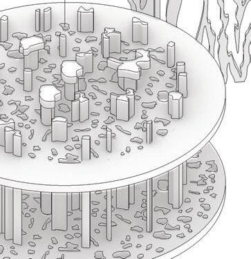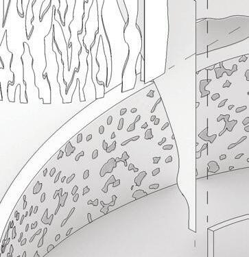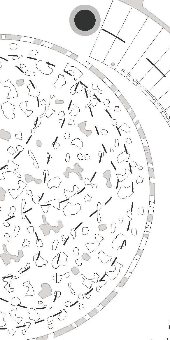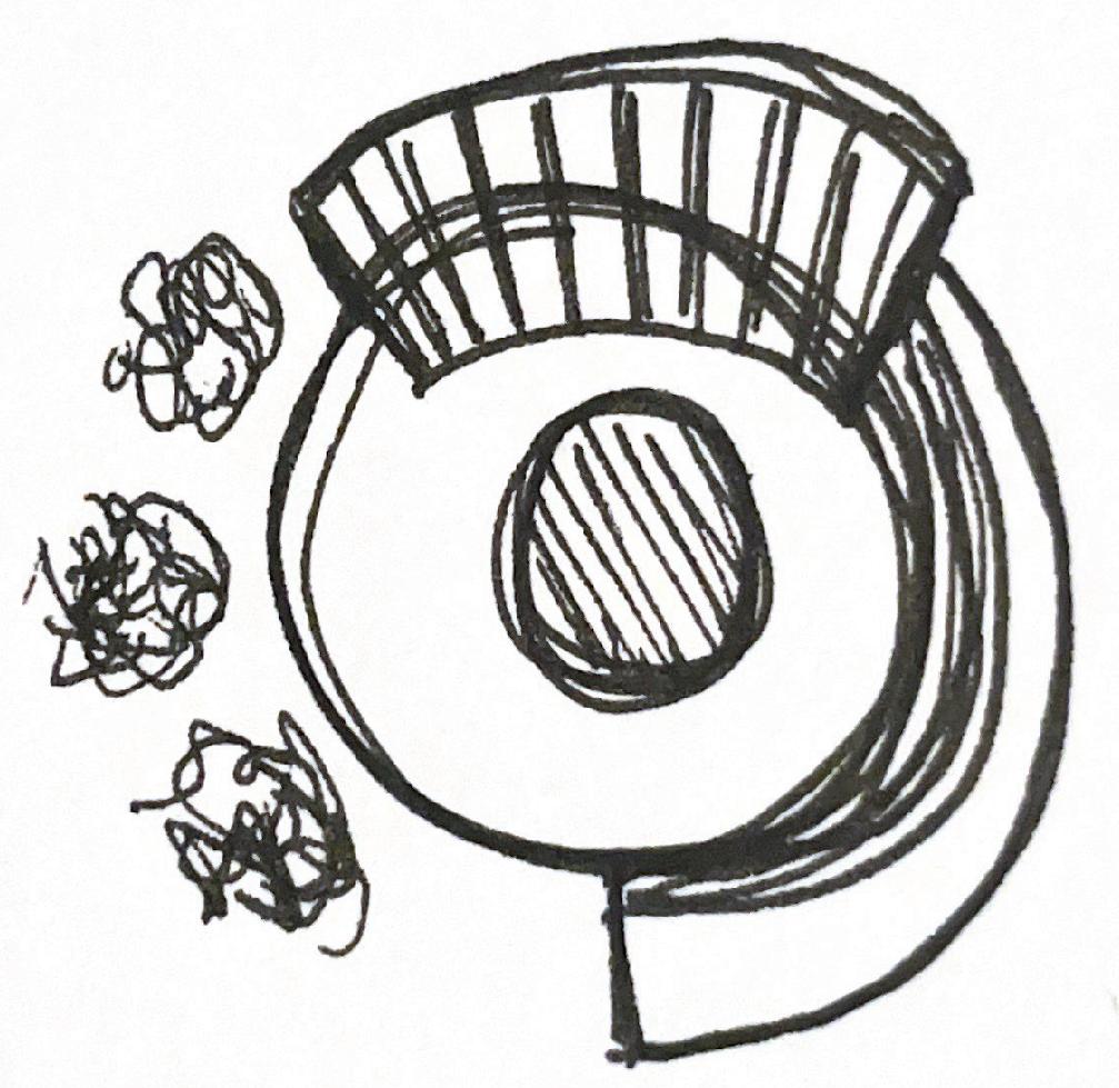 I started the design process by breaking down the shape of a circle. These sketch iterations represent the circulation and structural formation of the space. I experimented with different circular shapes to replicate the feeling of intimacy amongst users of the space.
