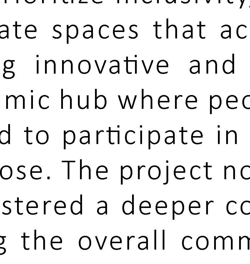 My interest in design has led to my passion for discovering the purpose and functionality of a designed space, and how it affects human interaction and relationships. I am particularly interested in the impact of how space can shape and alter the human experience. My goal is to utilize my knowledge and experiences in order to directly shape a positive and impactful human experience through design.