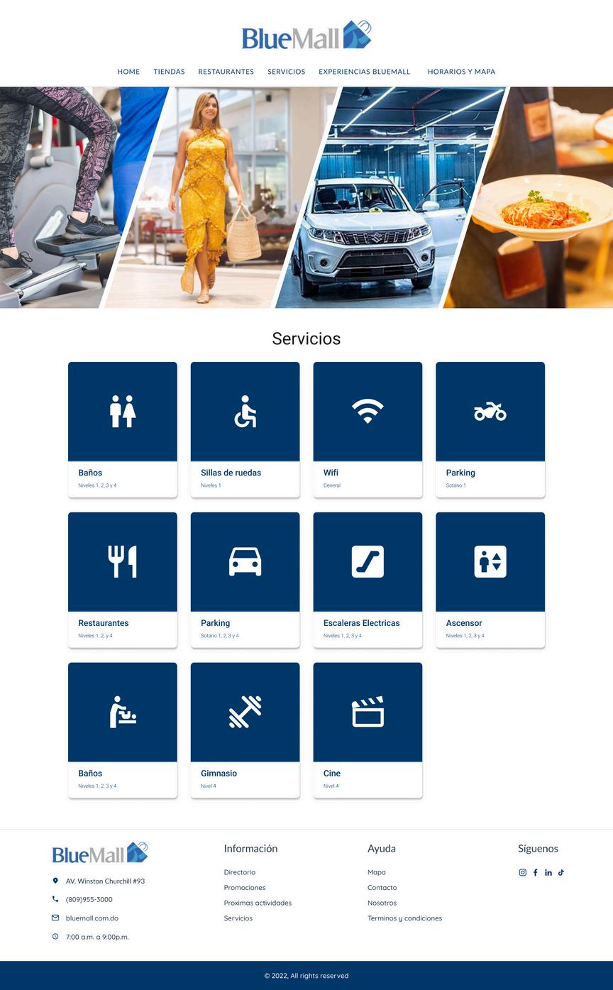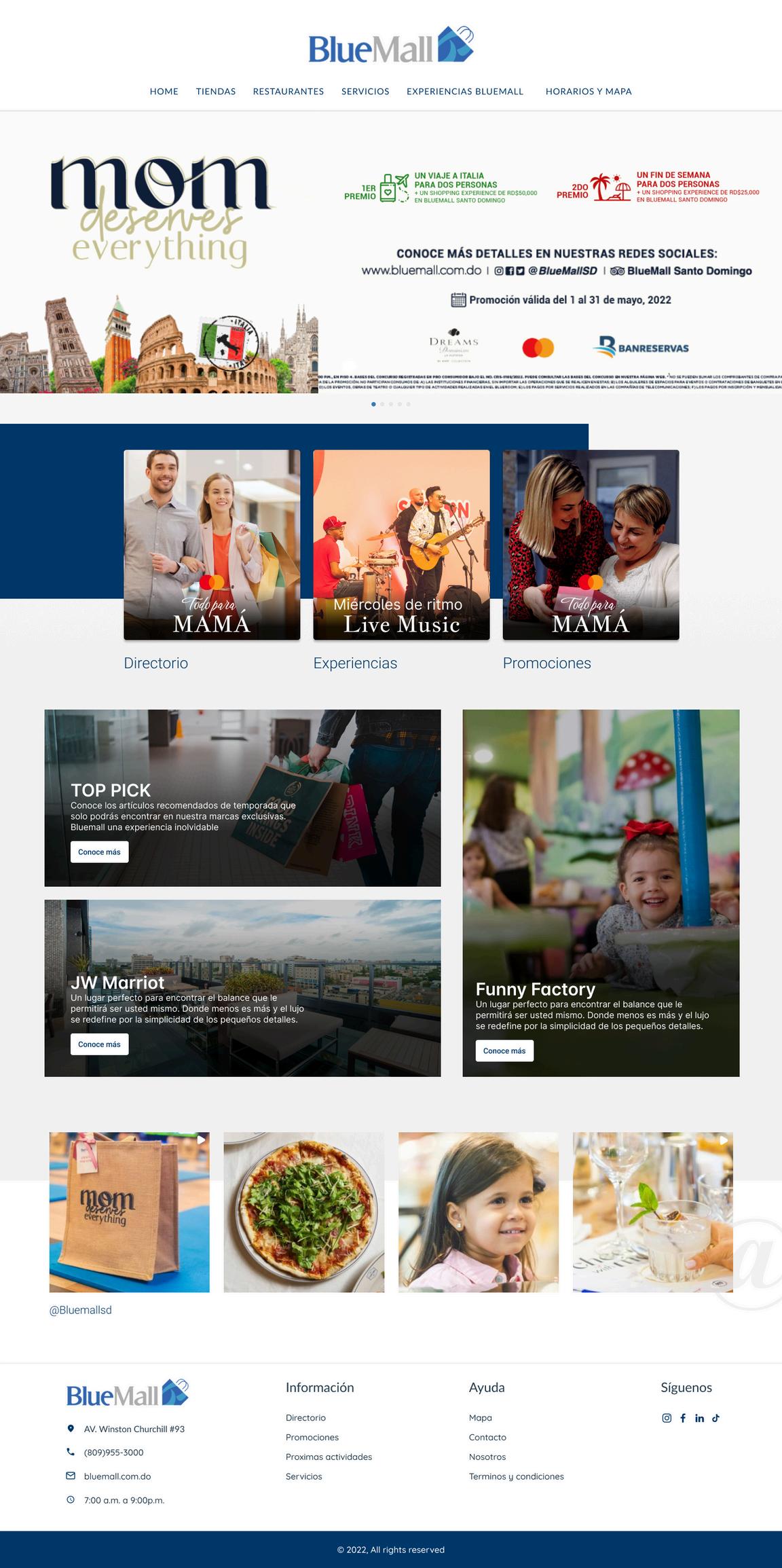 Este proyecto se centró en el rediseño de la página web de BlueMall Santo Domingo, un centro comercial de lujo reconocido en República Dominicana. El objetivo principal fue modernizar su presencia digital, alineándola con los estándares actuales de diseño y la exclusividad de su marca.