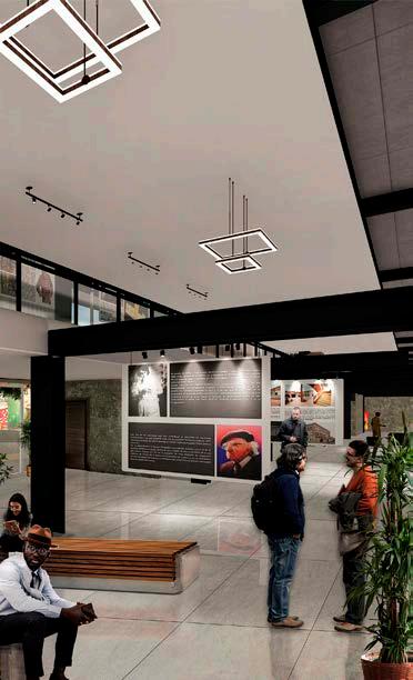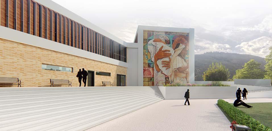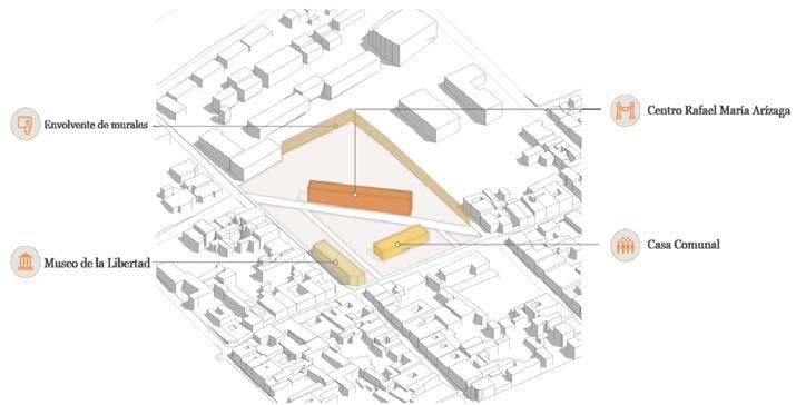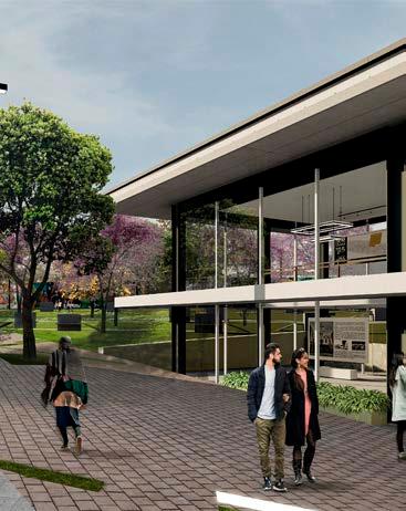 Espacios comunitarios Como eje central de punto de encuentro que organiza a las distintas facultades y áreas del campus (Biblioteca y Auditorio)