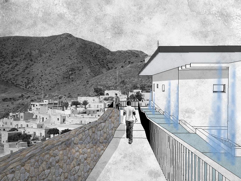 El proyecto se emplaza en una zona destacada por su paisaje desértico y cálido, por lo que se propone recuperar el legado árabe en un espacio donde se entienda la importancia del agua en la cultura y los principios que se desarrollaron. El equipamiento se sitúa en un poblado llamado El Pozo de los Frailes, como una propuesta de reactivación en el lugar.