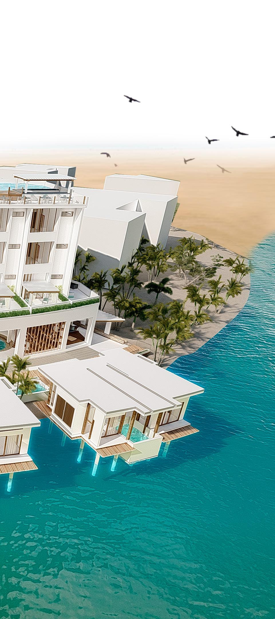 El Hotel Boutique se encuentra ubicado en Karibao, dentro del Complejo Urbanístico que conecta al cantón Playas Villamil con Puerto Engabao, la cual, cabe destacar, es considerada una zona con el segundo mejor clima del mundo según la UNESCO. El proyecto se adapta a la forma del terreno respetando las normativas y retiros establecidos. En cuanto a la parte formal de la propuesta se consideró como objetivo principal la liberación de espacios, de manera que la ventilación sea un componente trascendental considerando el clima que posee el lugar de emplazamiento; esto se consiguió a través de la implementación de varias áreas a doble altura, así como vanos que permitan la entrada y salida de aire del hotel fusionándolo con una morfología a manera de bloques donde predomina de manera evidente el estilo mediterráneo logrando un ambiente confortable para los usuario.
