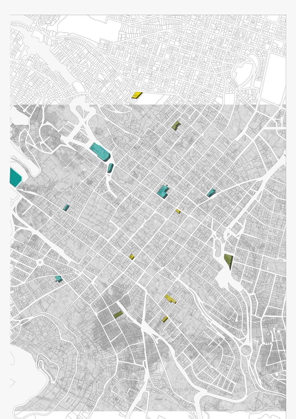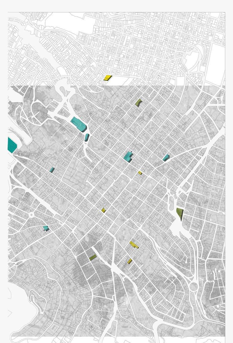En la propuesta de las sedes universitarias se utilizó como principal elemento la ubicación de edificaciones abandonadas, en mal estado y las catalogadas como negativas dentro del Centro Histórico de Quito. Con la ayuda de los mapas de equipamientos de museos, teatros, bibliotecas, centros de idiomas, institutos y centros de salud se realizó un análisis para definir las zonas que presentan mayor abastecimiento de los equipamientos.