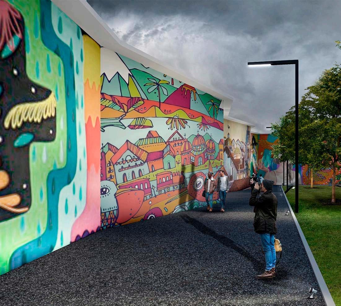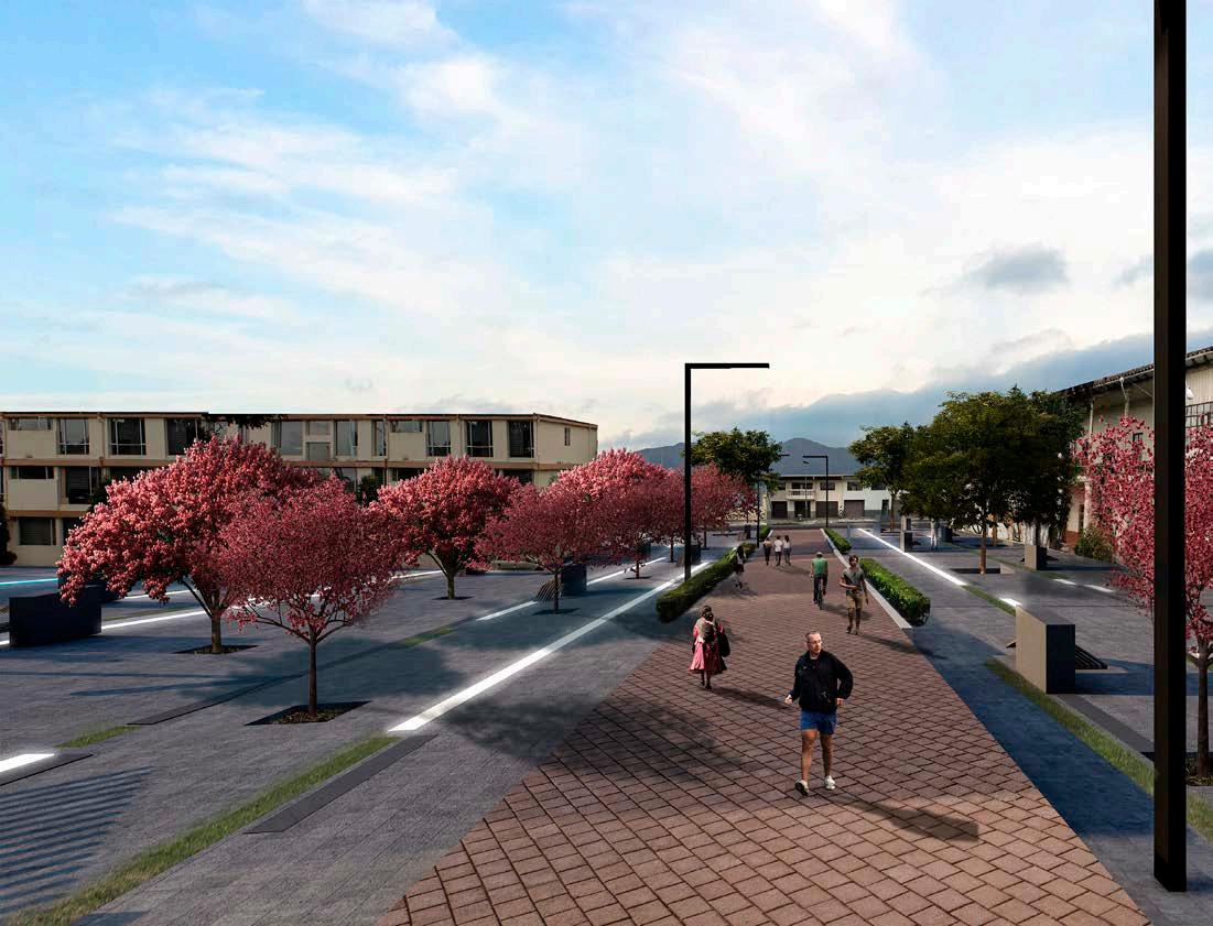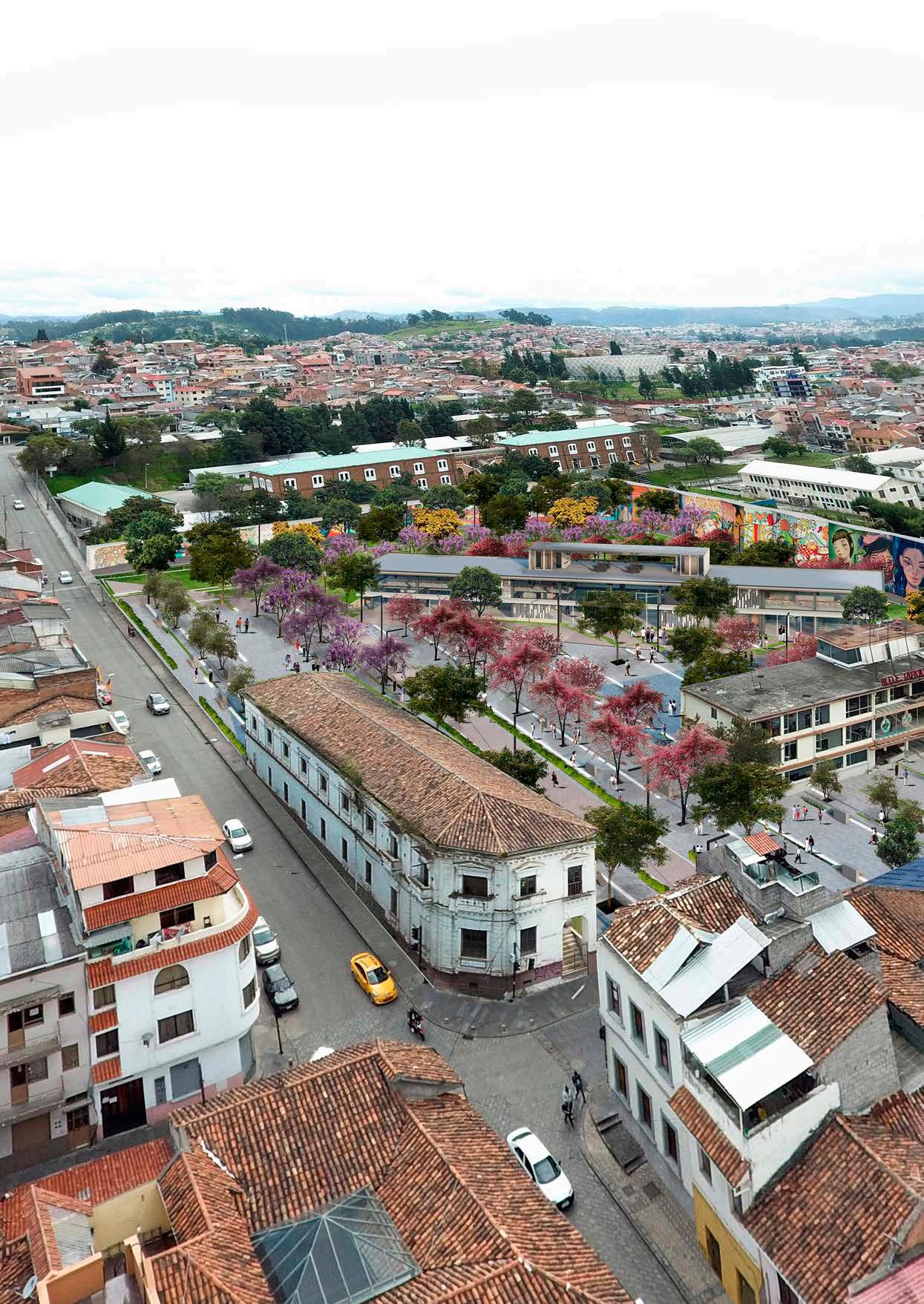 La propuesta aborda la problemática en la calle Rafael María Arízaga que forma parte del Área Especial del Centro Histórico de Cuenca. Sin embargo, en la actualidad se puede ver degradación socioespacial, debido a la falta de uso de las áreas públicas, haciendo que su valor esté en declive. La diagonal planteada, divide la propuesta en dos zonas, una seca y una vegetal, para el diseño de piso se realiza una consideración morfológica, a través de patrones de los tramos enfocados en los temas relevantes del lugar. Por lo que, el área destinada a plaza seca, interpreta la antigüedad de la calle y la conexión con las edificaciones preexistentes. Por otro lado, en el espacio vegetal se propone la ampliación de vegetación alta, media y baja; a su vez se ubica mobiliario urbano de acuerdo a la direccionalidad de los patrones, alternando materialidad, e iluminación con el objeto de crear una sensación de contraste. Para complementar el área exterior, se presenta una envolvente de arte urbano que ofrece un recorrido mediante una caminera de lastre, permitiendo visualizar el trabajo de distintos artistas.