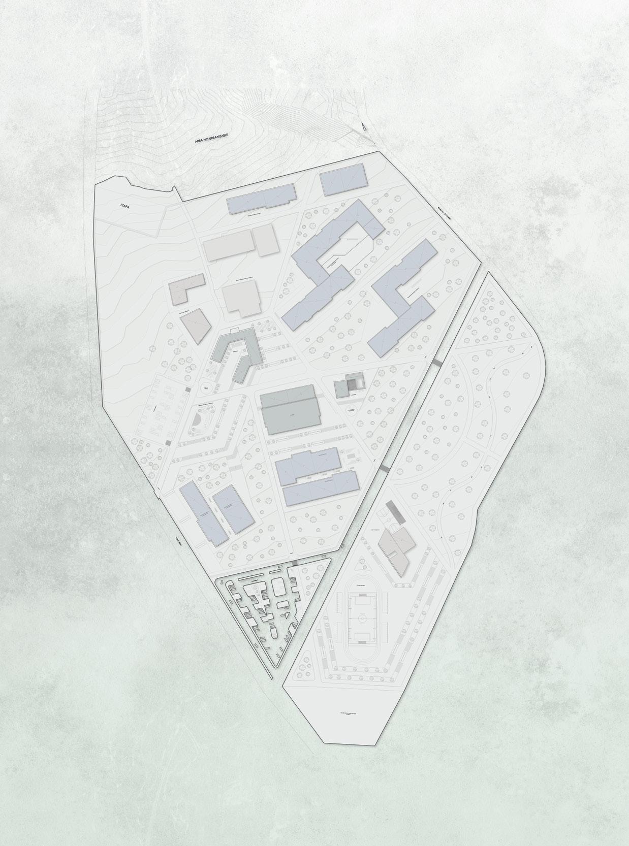 Se plantea distribuir el campus con las Unidades Académicas y área administrativa, que contara con biblioteca, cafetería, auditorio, espacio deportivo, gimnasio y lugares libres para el confort de los estudiantes.
