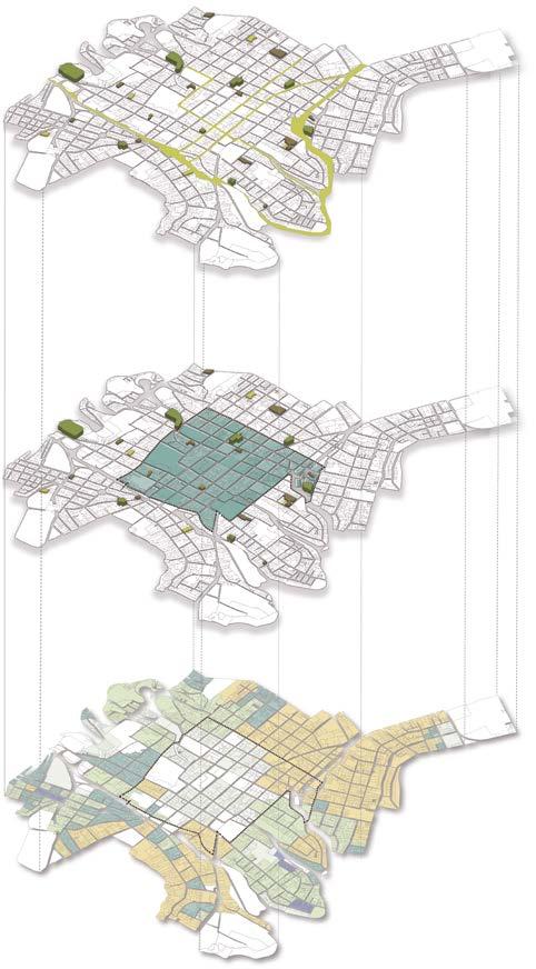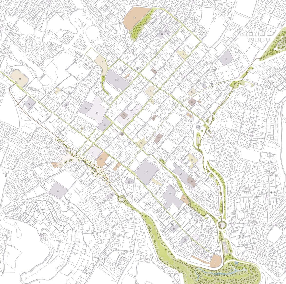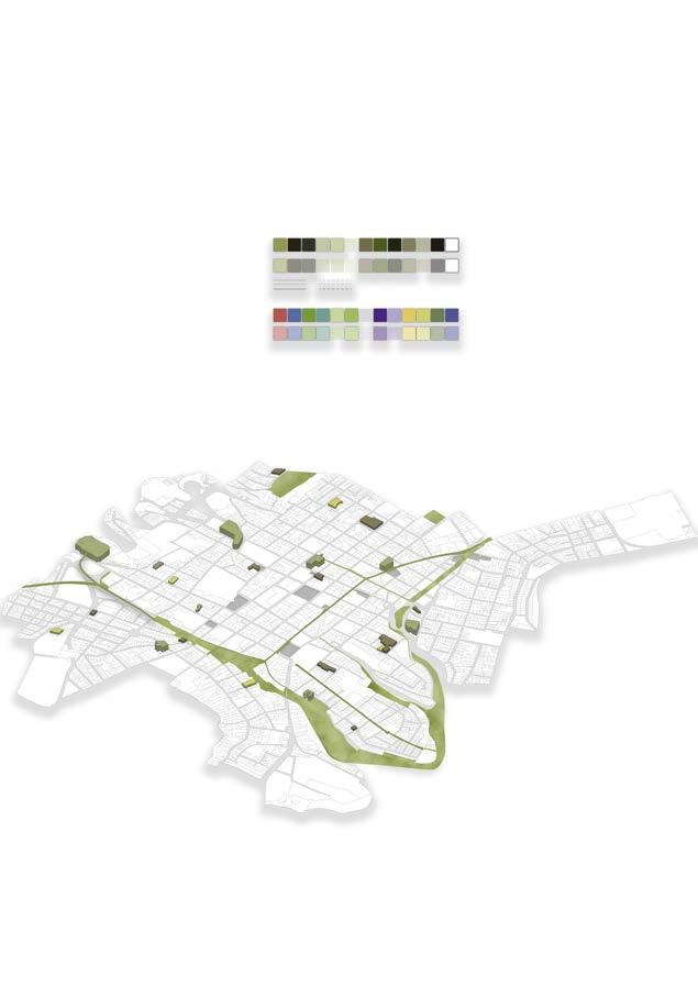 Modelo urbano A partir de este centro, irradian unos ejes compositivos que organizan el espacio