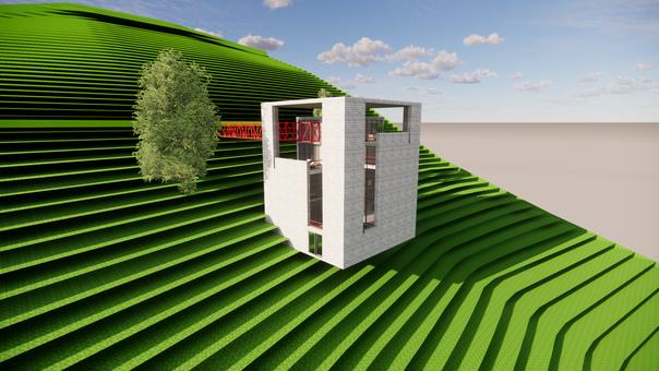 La casa tiene la forma de una torre cuadrada de diez metros de lado y trece de altura
