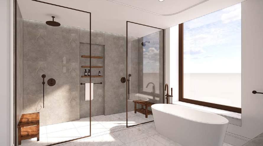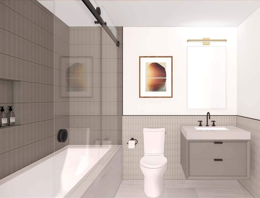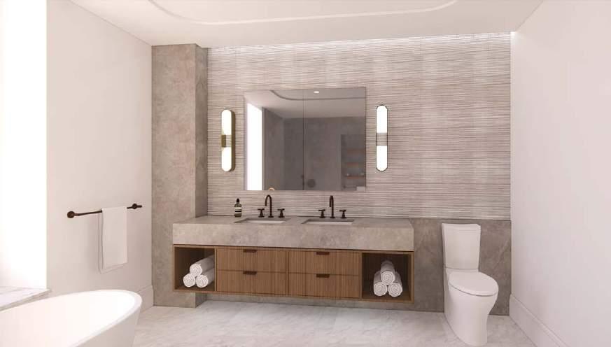 portfolio 2022 ff&e presentations Primary Bath material presentation boards PHASE CONTRIBUTION: + Concept Presentation + Design Development + Construction Documentation MEDIUM: + Revit + InDesign + Photoshop PAGE 38 PRIMARY BATHROOM 30X48 CLR FLR 30X48 CLR FLR ANS117160321 60DIA 30x60 CLR FLR REMOVABLE GLASS PARTITION EDGE OF SHOWER 6'-7 1/4" 11'-0 3/4" 13'-5 5/8" 3'-8 1/2" 2'-3 3/8" 3'-0 3/4" 4'-2 1/4" 8'-5 1/8" 2'-0" 5'-9" 3/4" 1'-6 1/4" 2'-10 5/8" 2'-0" 3'-9" 2'-0" 2'-0" 2'-0" 8'-7 1/2" 1'-9 5/8" 1'-6 7/8" 2'-0" 1'-5 1/2" 142 WEST 21ST STREET PAGE 40 PRIMARY BATHROOM MATERIALS SHOWER WALL FIOR DI BOSCO, HIGH HONED ARTISTIC TILE, 4’ X8’ VANITY WALL CINDER GREY FIELD TILE, RAKED & BRUSHED ARTISTIC TILE, 12” X 24” X 3/8” VANITY ALPIKORD GROOVE 50.73 WALNUT VENEER, DARK BROOKSIDE VENEERS VANITY SCONCE LOUP DOUBLE SCONCE BOYD LIGHTING PLUMBING ACCESSORIES OIL RUBBED BRONZE VANITY PULL LARGE DRAWER EDGE PULL OIL-RUBBED BRONZE REJUVENATION FLOOR ARABESCATO D’ORO 24 X 24, HONED ARTISTIC TILE 142 WEST 21ST STREET 6/15/22 PAGE 43 TYPICAL PRIMARY BATHROOM (REVISED) 142 WEST 21ST STREET 6/15/22 PAGE 44 TYPICAL PRIMARY BATHROOM (REVISED)
