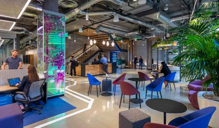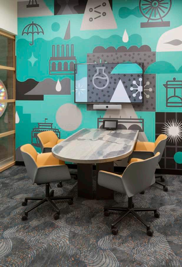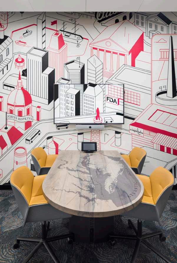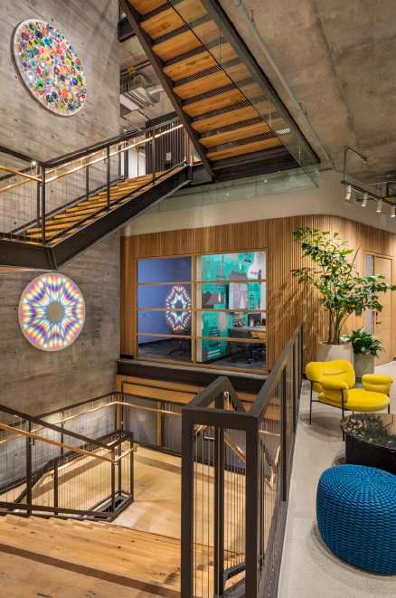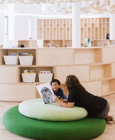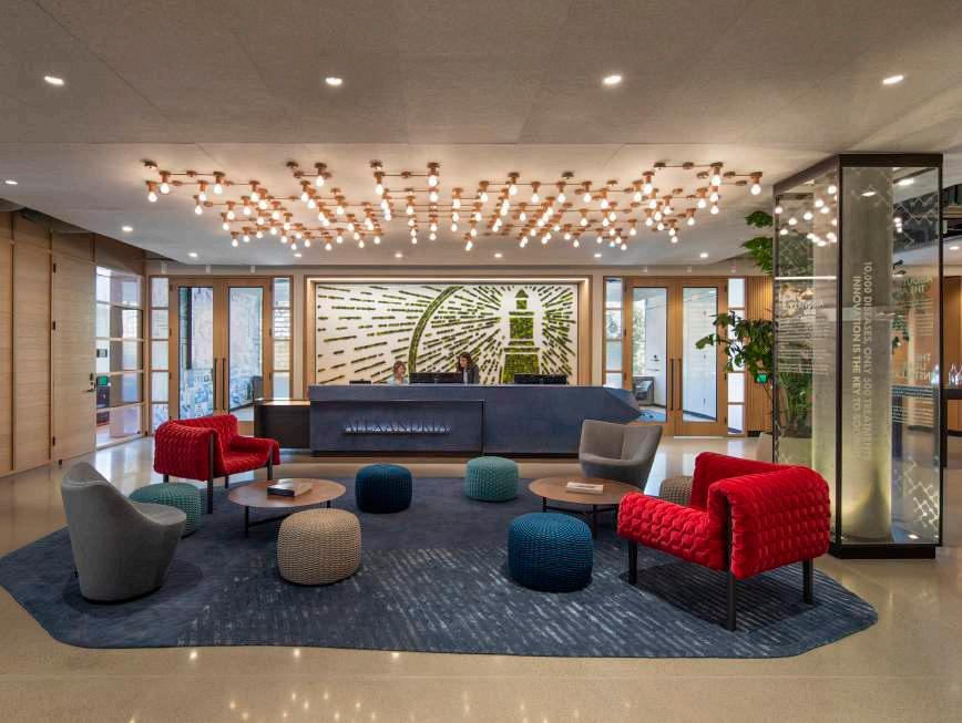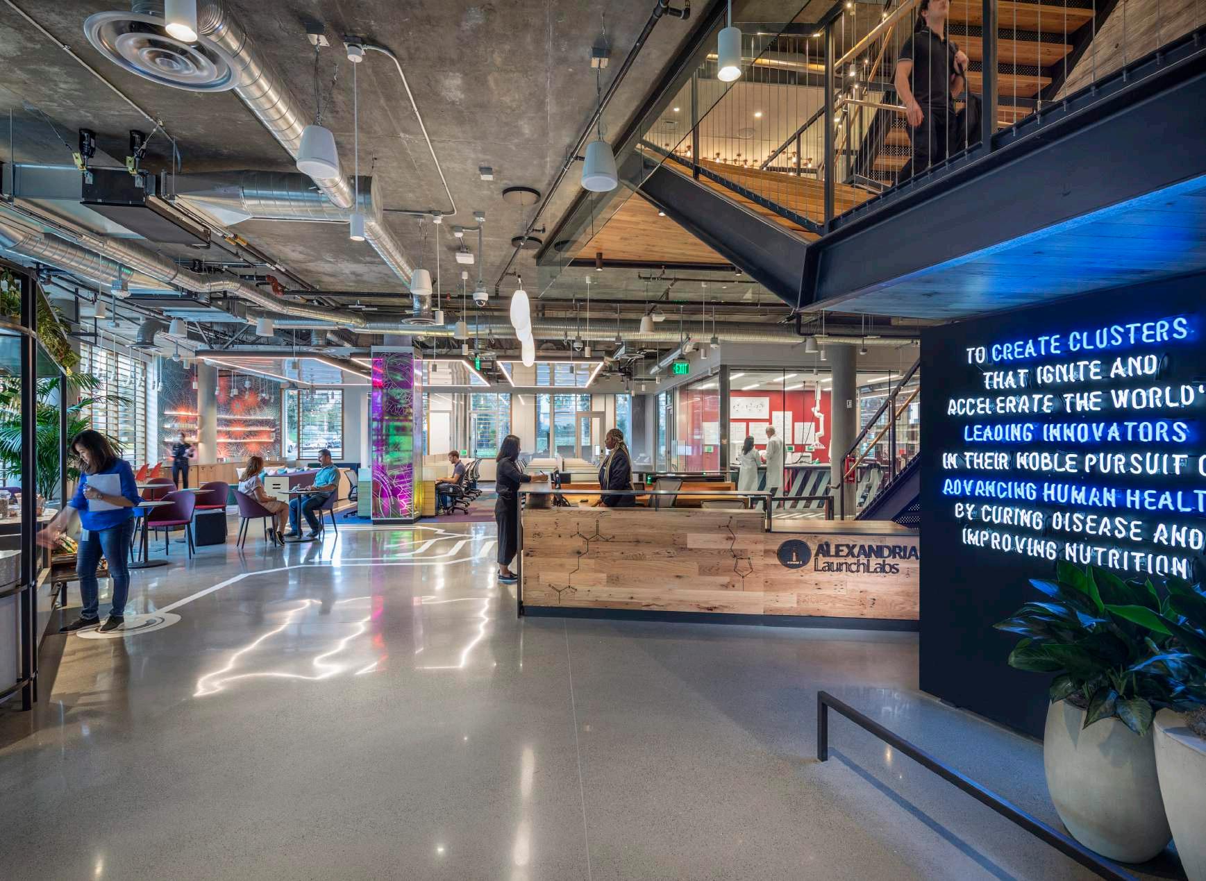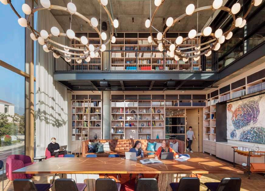 + Office HQ, Pasadena, CA A co-working lab space for cutting edge scientific research. WELL building designed in harmony with the surrounding community, incorporating local artists and fabricators from the clients’ national office locales. The space also draws inspi ration from their namesake, the historic Alexandria library.