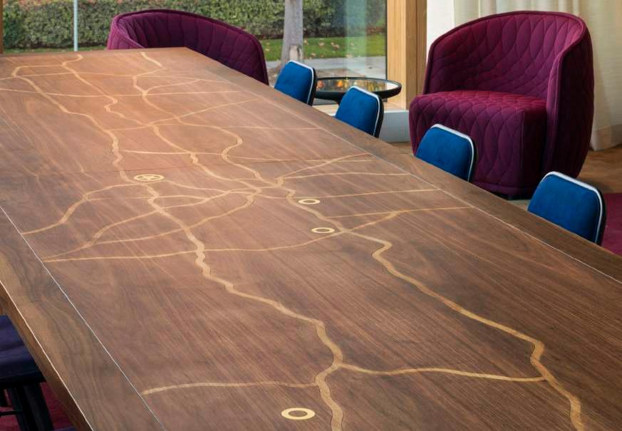 Bottom right: library conference table detail