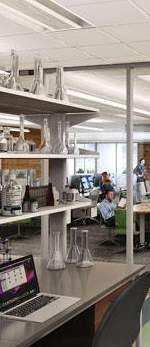 PHASE CONTRIBUTION: + Design Development (FF&E) + Construction Documentation (FF&E) + Construction Administration PHOTOS: Top: entry + common space Bottom left: entry cafe Bottom right: labs