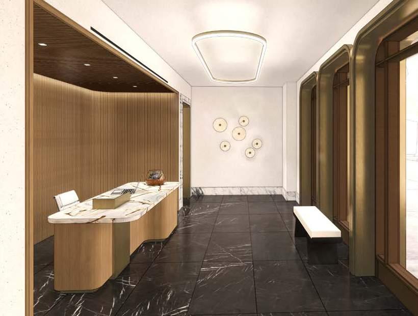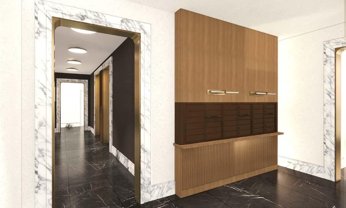 portfolio 2022 ff&e presentations PROJECT DESCRIPTION: + 21st Street High Rise Residential Building Boutique Hi Rise Condominium with bespoke detailing. 2-4 bedroom residences. PHASE CONTRIBUTION: + Concept Presentation + Design Development + Construction Documentation STREET PAGE 9 INTERIOR: VIEW FROM ENTRY VESTIBULE 142 WEST 21ST STREET 05/10/22 ELEVATOR LOBBY: VIEW OF MAILBOXES PAGE 16 LOBBY ELEVATOR VESTIBULE MAIL BOXES 142 WEST 21ST STREET PAGE 9 LOBBY MATERIALS FLOOR NERO MARQUINA 80” X 40” 102” X 70” AVERAGE ABC STONE CONCIERGE WALL + DESK AMERICAN WHITE OAK RIFT TO MATCH GRATO, CINIS,THE ESSENTIALS BASE BOARDS AND TRIM EUREKA CORCHIA MARBLE NASCO STONE + TILE WALLS MARMORINO PLASTER WITH MICA FLAKES SUPERSTRATA WINDOW FRAME, THRESHOLDS, DESK DETAILS: AGED BRASS WINDOW MULLIONS & EXTERIOR: DARK BRONZE CONCIERGE DESK TOP BLUE ROMA STONE SLAB, HONED VESTIBULE FLOOR MAT BLACK COCO WITH BRASS INLAY SURROUND ARONSON’S FLOOR COVERING WALL SCONCES ALABASTER ECLIPSE 10” & 14” BLACKENED BRASS ALLIED MAKER